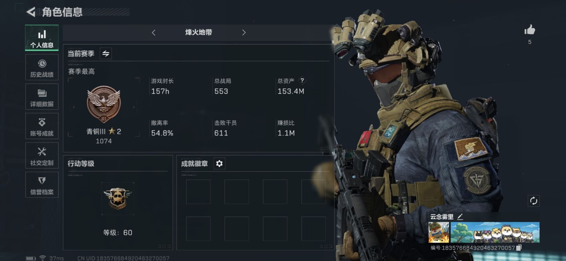 [11881399]总资产:153.4M 7传说枪械 哈夫币:11.337K 进阶安全箱(2×2)9.15号到期 可二次 可修改实名 烽火地带段位:青铜 全面战场段位:无段位 传说武器皮肤:M4A1突击步枪-阿米娅,CAR-15突击步枪-阿米娅,复合弓-黑-天际线,AWM狙击步枪-捞点薯条,腾龙突击步枪-捞点薯条,93R-捞点薯条,勇士冲锋枪-能天使-午夜邮差 史诗武器皮肤:SV-98狙击步枪-林中猎手,SV-98狙击步枪-囚徒,QBZ95-1突击步枪-曙光,SVD狙击步枪-阿萨拉工艺