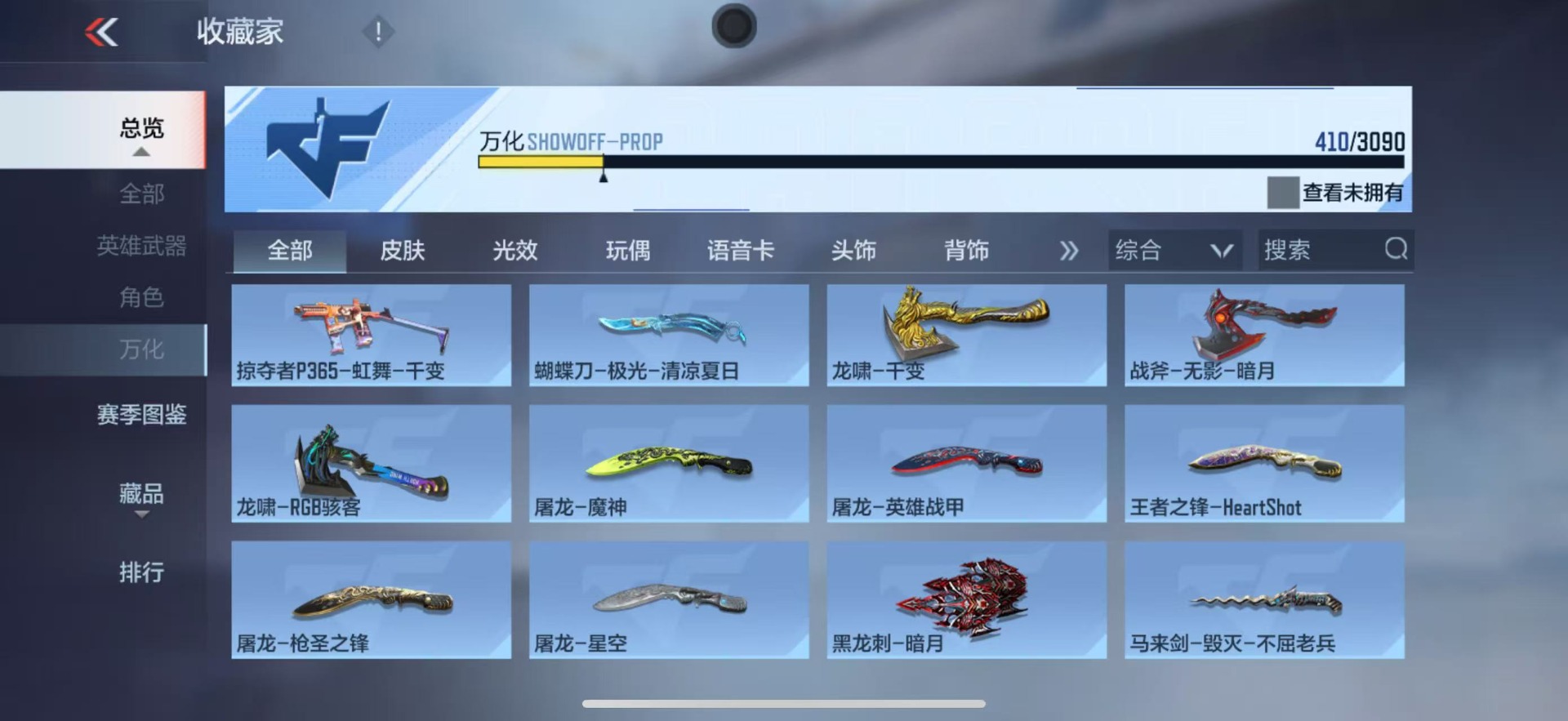 - QQ 可二次 皮肤资产价值 使用源晶点数 拥有皮肤 段位Lv.280铂金II 步枪0 近战武器0 手枪VCT0 手枪0 狙击枪0 套装0 霰弹枪0 机枪0 冲锋枪0 英雄0 热门卡面0 热门挂饰0