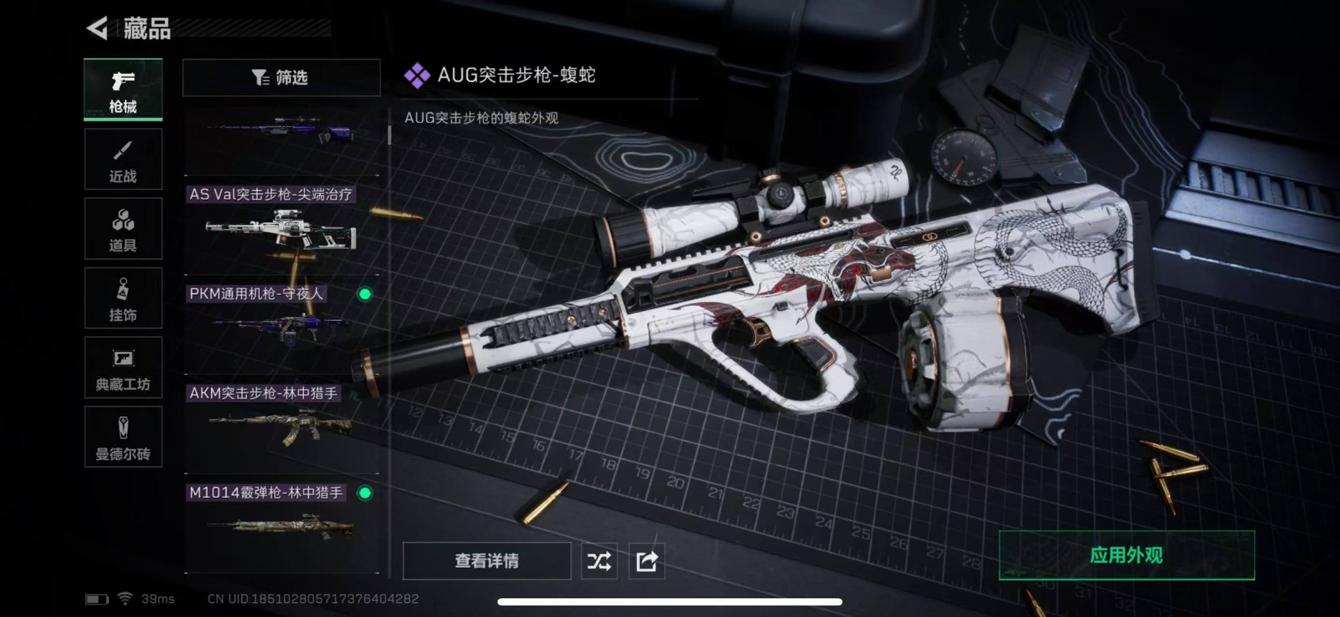 - PX_2101138-??/枪械13/装备457/载具2/战备230/王牌印记14/热力值119076/四级AKM-炫紫旋律/五级AKM-绿萝繁花/七级SCAR-L-纯梦嫁纱/七级M416-心之恋语/五级M416-电玩时刻/五级GROZA-镜光银凌/四级AUG-圣斗士星矢/六级M762-甜蜜誓约/七级UMP45-恐龙拽拽/四级Kar98K-巳巳如意/三级M417-第五大道/一级DP-28-千金淑猫