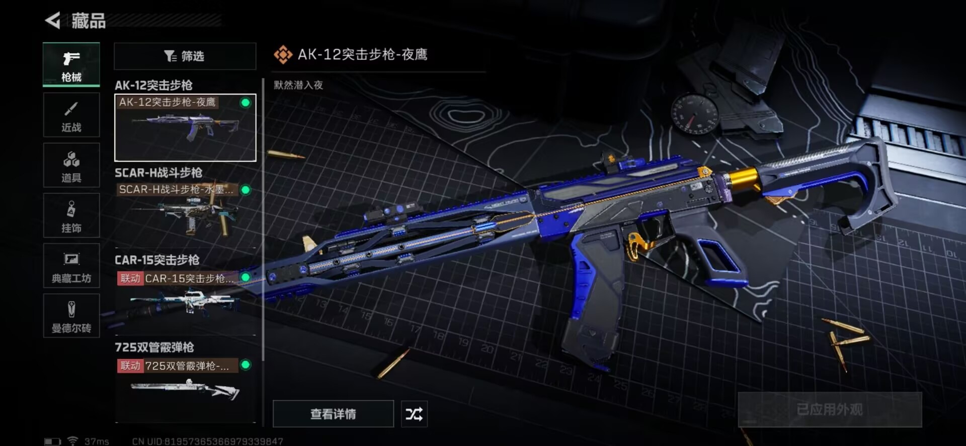 [11881695]总资产:100.7M 2干员外观 5传说枪械 哈夫币:1.709K 可二次 可修改实名 烽火地带段位:黑鹰 全面战场段位:无段位 传说武器皮肤:SCAR-H战斗步枪-水墨云图,复合弓-黑-天际线,725双管霰弹枪-送葬人-无题密令,CAR-15突击步枪-阿米娅,AK-12突击步枪-夜鹰 干员外观:骇爪-水墨云图,露娜-黑·天际线