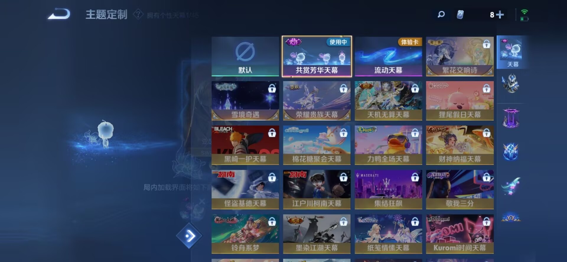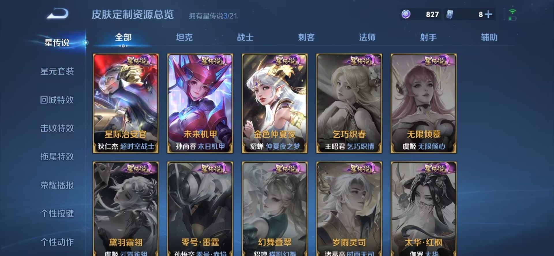 刘邦德古拉伯爵,阿轲节奏热浪,铠曙光守护者,曹操幽灵船长,廉颇地狱岩魂,小乔缤纷独角兽,孙策猫狗日记,吕布圣诞狂欢,吕布末日机甲,诸葛亮黄金分割率,刘禅天才门将,刘禅绅士熊喵,宫本武藏鬼剑武藏,公孙离无限星赏官,兰陵王暗隐猎兽者,貂蝉圣诞恋歌,李白千年之狐,安琪拉时之奇旅,艾琳奇遇舞章,白起星夜王子,嬴政摇滚巨星,嬴政暗夜贵公子,雅典娜冰冠公主,李元芳逐浪之夏,百里守约特工魅影,墨子龙骑士,墨子金属风暴
