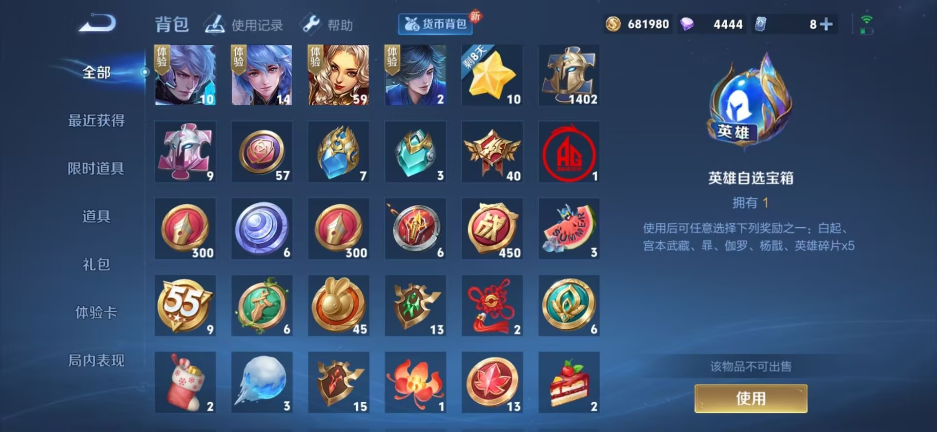 - [12227586]V8 1典藏 1珍品传说 13传说 125英雄 309皮肤 可修改实名 优质装备:鸣剑·曳影,酷洛米之心,黄金射手座,猫影幻舞,久胜战神,云霓雀翎,末日机甲-孙尚香(绿蚂蚱),仲夏夜之梦(大飞蛾),地狱之眼,淬星耀世,澜逐花归海,涂山容容 传说皮:幻光神枪 珍宝阁皮:胡桃夹子,万物之道,优雅恋人 限定皮:愿照·岁时盈(虞姬年限),至尊宝,时之彼端,时雨天司(水龙头),神威(电光马子),瑞麟志(木兰年限),遇见飞天,高山流水,五谷丰年,游园惊梦,梁祝,李小龙,朱雀志(守约年限),如梦令-后羿,一生所爱,大圣娶亲,冰霜恋舞曲,神器·万象笔 史诗皮:龙之律动,石田雨龙,怒海争锋,紫霞仙子,苍穹之光,电玩小子(小书包),白龙吟,黄金分割率,特工魅影,千年之狐,永昼,江河有灵,冰冠公主,偶像歌手,晚萤,龙骑士(小龙虾),末日机甲-吕布,猫狗日记-孙策,猫狗日记-大乔,乱世虎臣,节奏热浪,修罗,女仆咖啡,摇滚巨星,水果甜心,绅士熊喵,天才门将,星夜王子,心灵骇客,功夫厨神,德古拉伯爵,暗隐猎兽者,幽灵船长,鬼剑武藏,暗渊魔法,心灵战警,舞动绿茵,地狱岩魂,纤云弄巧,繁星吟游(呼啦呼啦),拒霜思,缤纷独角兽,乘风破浪,逐浪之夏,月团寄思,水晶猎龙者,曙光守护者,箭羽风息,金属风暴,原初追逐者,圣诞狂欢,圣诞恋歌,鹰眼统帅,暗夜贵公子,魅力维加斯,黎明之约,奇遇舞章,无心,未来纪元-赵云