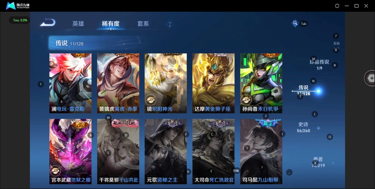 - [12073586]V7 7传说 124英雄 161皮肤 可修改实名 优质装备:末日机甲-孙尚香(绿蚂蚱),无双飞将,浮生妄,妄想实况 传说皮:云诺千山,祥瑞亨通 珍宝阁皮:妄想食味 限定皮:鸣野蒿,朱雀志(守约年限),蜜橘之夏 史诗皮:鸭鸭历险记-刘禅,飞车小橘子,狼魂孤将,绮世丹青,龙之律动,雪豹·霜爪,茶境仙,星界特工,永昼,末日机甲-莱西奥,蒙恬荣光圣徽,无限星赏官,末日机甲-吕布,乱世虎臣,摇滚巨星,水果甜心,星夜王子,暗隐猎兽者,幽灵船长,鬼剑武藏,缤纷独角兽,逐浪之夏,水晶猎龙者,原初追逐者,圣诞恋歌,鹰眼统帅,魅力维加斯,无心
