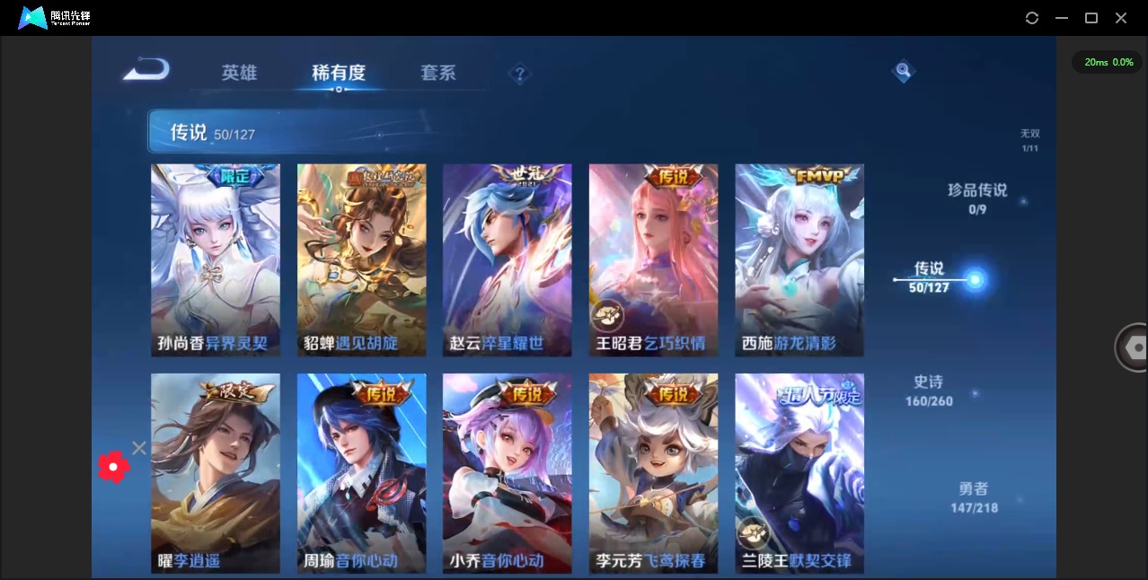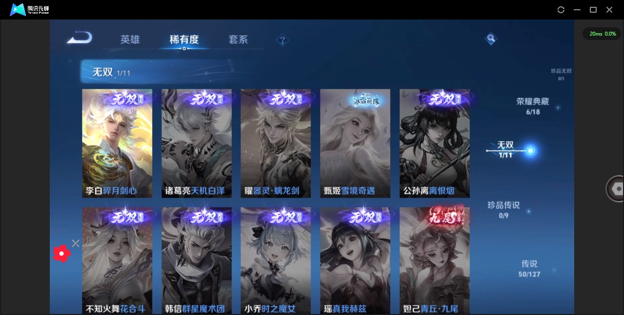 - [11901515]V7 11传说 124英雄 288皮肤 可修改实名 优质装备:云鹰飞将(小将军),猫影幻舞,久胜战神,地狱火,地狱之眼,无双飞将,澜逐花归海 传说皮:祥瑞亨通 珍宝阁皮:妄想食味,玩趣恶龙 限定皮:愿照·九州拓(澜年限),鸣野蒿,至尊宝,白虎志(电光耗子),神威(电光马子),遇见飞天,高山流水,五谷丰年,游园惊梦,梁祝,逐梦之星,李小龙,逐梦之影,朱雀志(守约年限),霸王别姬-项羽,乒乒小将,蜜橘之夏 史诗皮:化蝶舞,星界战将,石田雨龙,怒海争锋,蒙犽顽岩魄,芈月浮光幕影,琥珀纪元伽罗,蔬乡物语(鲁班七号),百相守梦-黄忠,紫霞仙子,电玩小子(小书包),白龙吟,黄金分割率,特工魅影,千年之狐,江河有灵,百解令(蒙犽),蒙恬荣光圣徽,无限星赏官,冰冠公主,青蛇,偶像歌手,晚萤,电玩·爆裂旋风,猫狗日记-孙策,猫狗日记-大乔,时之恋人-孙尚香,乱世虎臣,节奏热浪,修罗,女仆咖啡,摇滚巨星,水果甜心,绅士熊喵,星夜王子,心灵骇客,暗隐猎兽者,幽灵船长,鬼剑武藏,舞动绿茵,纤云弄巧,繁星吟游(呼啦呼啦),拒霜思,缤纷独角兽,逐浪之夏,水晶猎龙者,曙光守护者,金属风暴,原初追逐者,圣诞狂欢,鹰眼统帅,黎明之约,无心