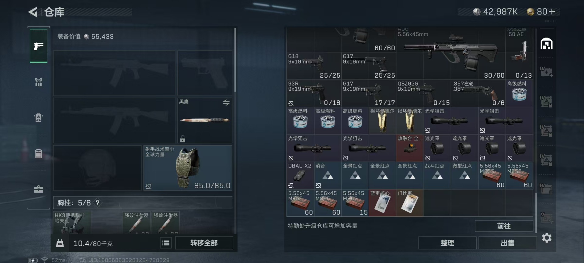 [11882117]总资产:130.2M 1传说枪械 哈夫币:42.987K 进阶安全箱(2×2)9.15号到期 可二次 可修改实名 烽火地带段位:黑鹰 全面战场段位:军士长 传说武器皮肤:M4A1突击步枪-阿米娅