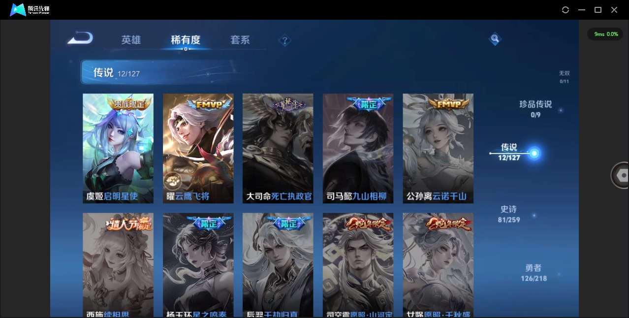 - [11526067]V6 4传说 113英雄 134皮肤 可修改实名 优质装备:云鹰飞将(小将军),久胜战神,一念神魔,末日机甲-孙尚香(绿蚂蚱) 珍宝阁皮:万物之道 限定皮:冰锋战神,御风骁将(吕布年限),逐梦之星,天狼征服者,逐梦之影 史诗皮:石田雨龙,百相守梦-黄忠,紫霞仙子,白龙吟,特工魅影,千年之狐,冰冠公主,偶像歌手,龙骑士(小龙虾),末日机甲-吕布,猫狗日记-孙策,修罗,功夫厨神,德古拉伯爵,暗隐猎兽者,幽灵船长,鬼剑武藏,地狱岩魂,繁星吟游(呼啦呼啦),乘风破浪,曙光守护者,原初追逐者,圣诞狂欢,鹰眼统帅,魅力维加斯,黎明之约,未来纪元-赵云