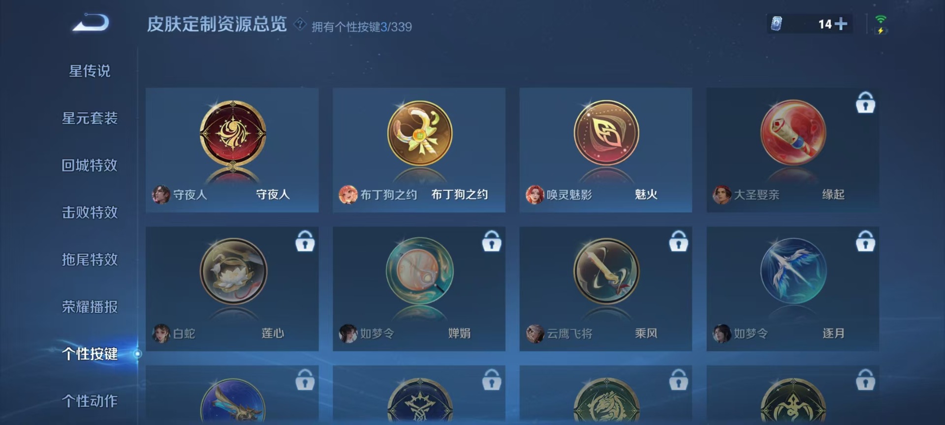 刘邦夺宝奇兵,夏侯惇朔风刀,老夫子醍醐杖,沈梦溪星空之诺,沈梦溪大漠名商,盾山御銮,曹操烛龙,孙膑妖精王,苏烈千军破阵,典韦穷奇,典韦蓝屏警告,达摩沙漠行僧,牛魔御旌,项羽苍威无极,吕布猎兽之王,庄周蜃楼王,元歌云间偶戏,兰陵王金庭之子,裴擒虎擒涛扼浪,鲁班大师探海日志,明世隐疑决卦,蒙犽狂想玩偶喵,马可波罗暗影游猎,白起狰,鬼谷子原初探秘者,张良古海寻踪,女娲朔望之晖,桑启海盐诗旅,狄仁杰万华元夜,嬴政白昼王子,芈月重明,程咬金演武夺筹,扁鹊炼金王,李元芳银河之约,李元芳云中旅人,弈星混沌棋,虞姬凯尔特女王,米莱狄御霄,钟馗驱傩正仪,狂铁御狮,太乙真人饕餮