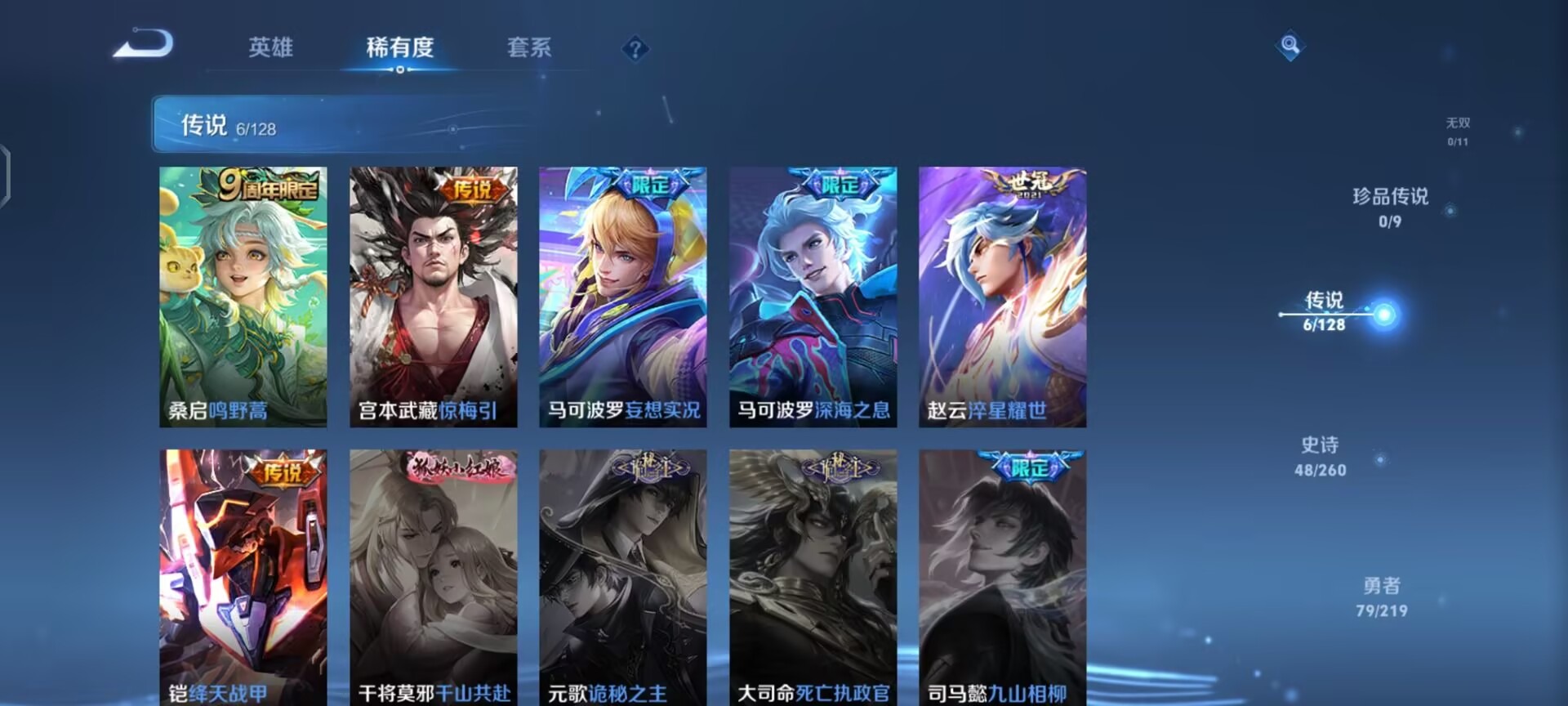 - PX_2097170-实名: 不可修改 性别: 男号 英雄数: 123 皮肤数: 188 传说皮: 地狱火 限定皮: 李小龙,梁祝,引擎之心,至尊宝,大圣娶亲,愿照·岁时盈 亮点: 【店长推荐精品号】历史银标孙悟空最高战力6470,2传说:虞姬愿照·岁时盈,孙悟空地狱火,34史诗级皮肤:赵怀真器灵·浮梦炉,孙悟空情人节限定皮肤大圣娶亲等,贵6,1星传说:孙悟空幽冥火,星币4419,满级铭文,有个性