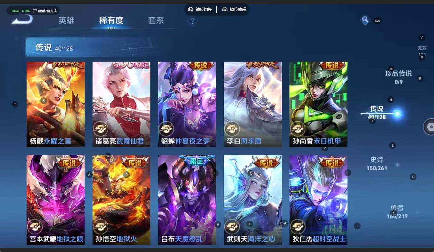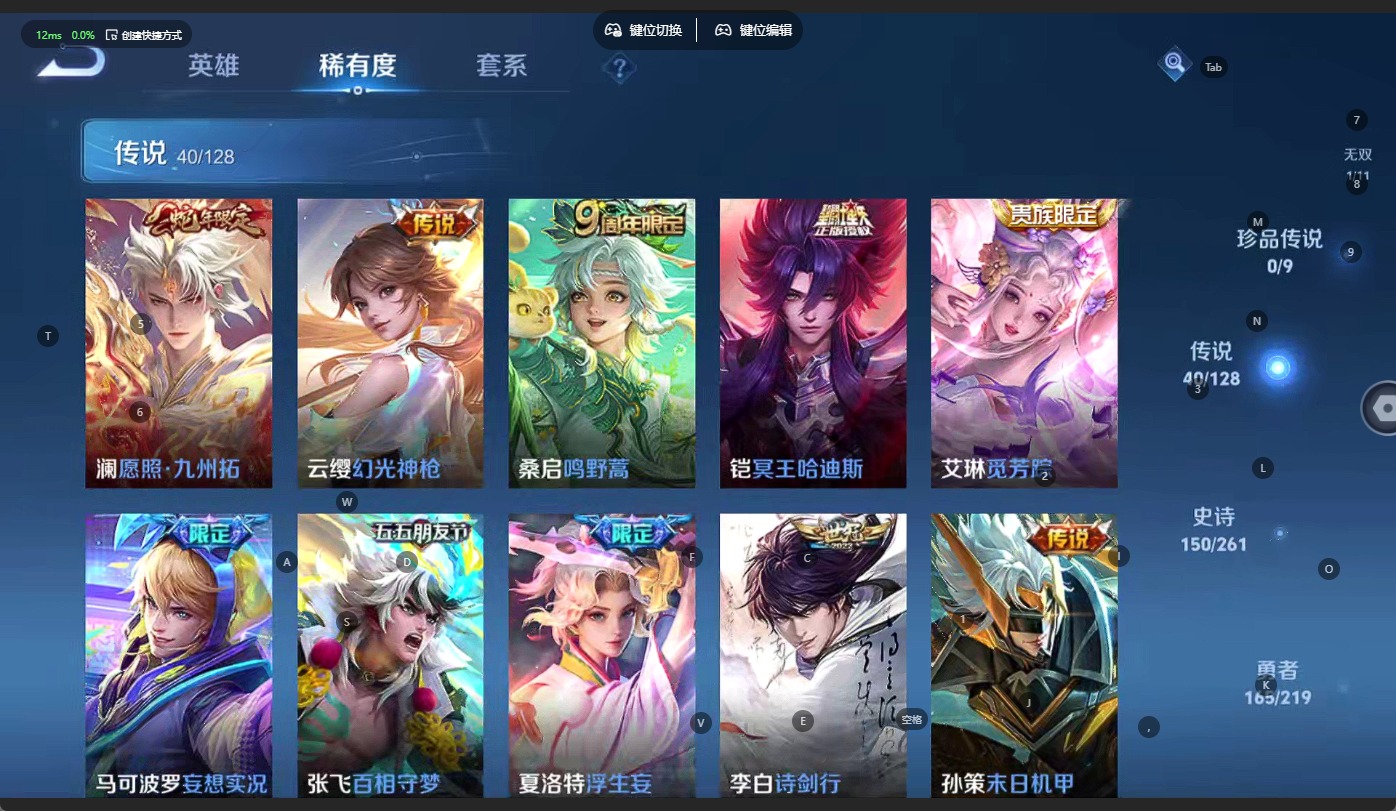 - [12107615]V7 1典藏 5传说 124英雄 187皮肤 可修改实名 优质装备:鸣剑·曳影,零号·赤焰,无双飞将,夜礼服假面 珍宝阁皮:蔷薇恋人 限定皮:白晶晶,时雨天司(水龙头),御风骁将(吕布年限),李小龙,默契交锋-兰陵王,默契交锋-花木兰,冰霜恋舞曲 史诗皮:龙之律动,石田雨龙,百相守梦-黄忠,织梦人,紫霞仙子,特工魅影,江河有灵,魅语,百解令(蒙犽),偶像歌手,龙骑士(小龙虾),乱世虎臣,节奏热浪,修罗,摇滚巨星,水果甜心,星夜王子,功夫厨神,幽灵船长,鬼剑武藏,心灵战警,纤云弄巧,拒霜思,缤纷独角兽,乘风破浪,金属风暴,原初追逐者,圣诞狂欢,圣诞恋歌,鹰眼统帅,魅力维加斯,无心