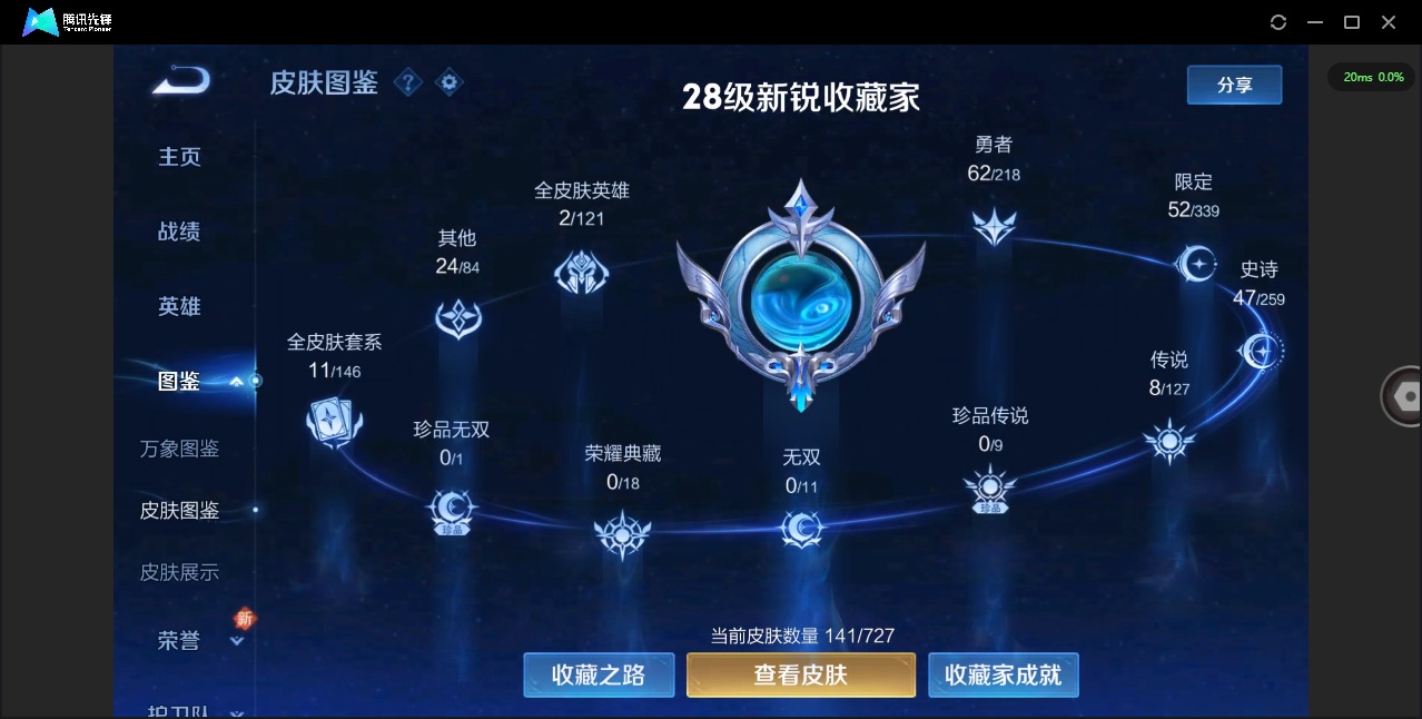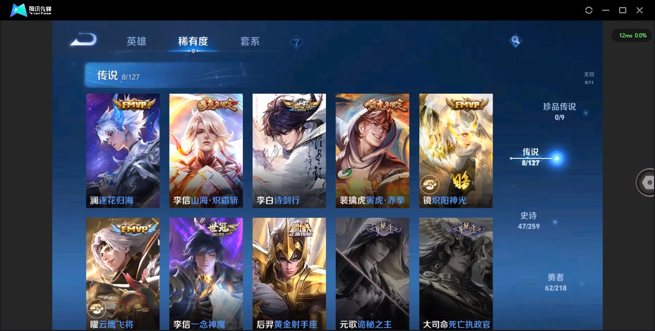 - [10550809]V7 1珍品传说 8传说 119英雄 152皮肤 可修改实名 珍品传说:大耳狗之梦 传说皮:星之鸣奏,幻光神枪,铠冥王哈迪斯,山海·炽霜斩(李信年限),地狱之眼 珍宝阁皮:妄想食味 限定皮:愿照·九州拓(澜年限),愿照·众生和(妲己年限),逐霄战戟,鸣野蒿,李小龙,山海·玄木吟(马可年限) 史诗皮:茶境仙,器灵·浮梦炉,糖绘人间,鸭鸭历险记-刘禅,芈月浮光幕影,化蝶舞,紫霞仙子,千年之狐,高渐离燃音魔法,青蛇,偶像歌手,末日机甲-吕布,时之恋人-孙尚香,节奏热浪,女仆咖啡,水果甜心,星夜王子,舞动绿茵,地狱岩魂,逐浪之夏,曙光守护者,箭羽风息,圣诞狂欢,圣诞恋歌,鹰眼统帅,魅力维加斯,赏金猎手,无心,未来纪元-赵云