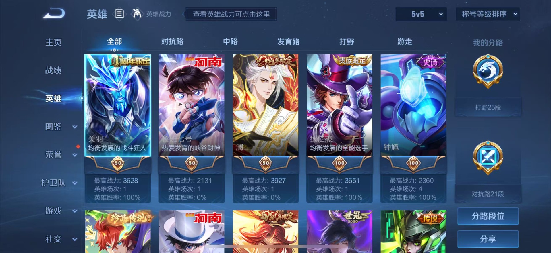 - [11941252]V6 5传说 116英雄 82皮肤 可修改实名 优质装备:云鹰飞将(小将军),末日机甲-孙尚香(绿蚂蚱),淬星耀世,涂山容容 限定皮:鸣野蒿,永曜之星 史诗皮:化蝶舞,龙之律动,破空之剑,东方月初,织梦人,千年之狐,末日机甲-莱西奥,水果甜心,星夜王子,功夫厨神,德古拉伯爵,鬼剑武藏,乘风破浪,圣诞狂欢,鹰眼统帅,魅力维加斯