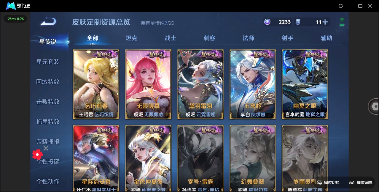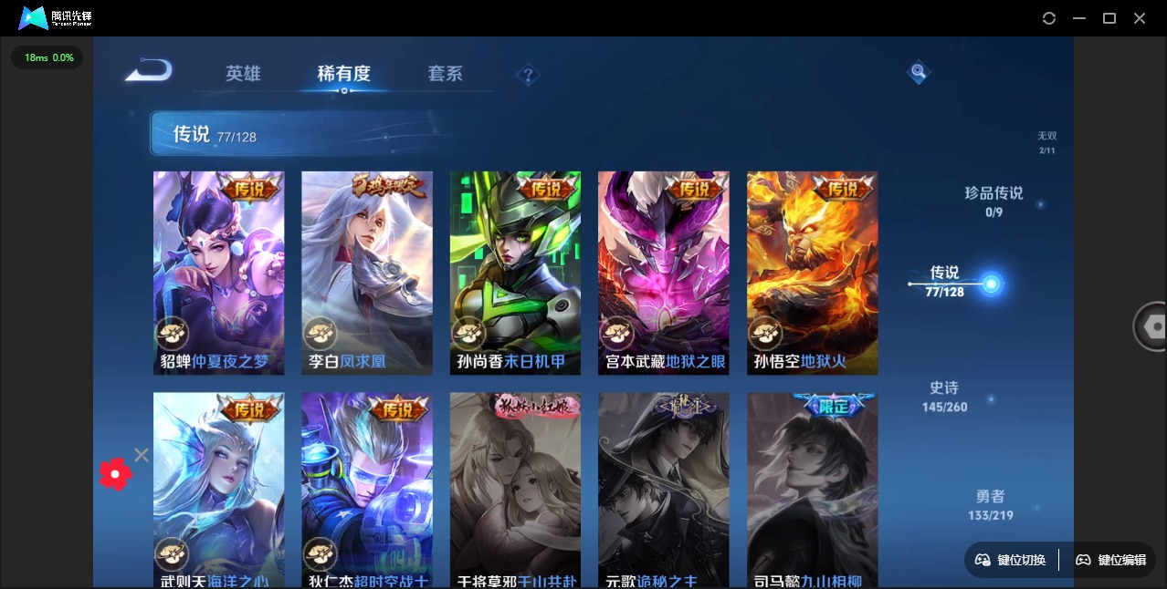 - PX_2097118-09 安卓QQ/至尊星耀/269皮肤/124英雄/1典藏/0珍品无双/0无双/1珍品传说/19传说/62史诗/8稀有英雄 【1 珍品传说】怪盗基德 马可波罗, 【1 典藏皮肤】全息碎影 孙悟空, 【19 传说皮肤】启明星使 虞姬,逐花归海 澜,云鹰飞将 曜,永曜之星 杨戬,凤求凰 李白,仲夏夜之梦 貂蝉,默契交锋 兰陵王,武陵仙君 诸葛亮,黄金射手座 后羿,霜月吟 露娜,无限
