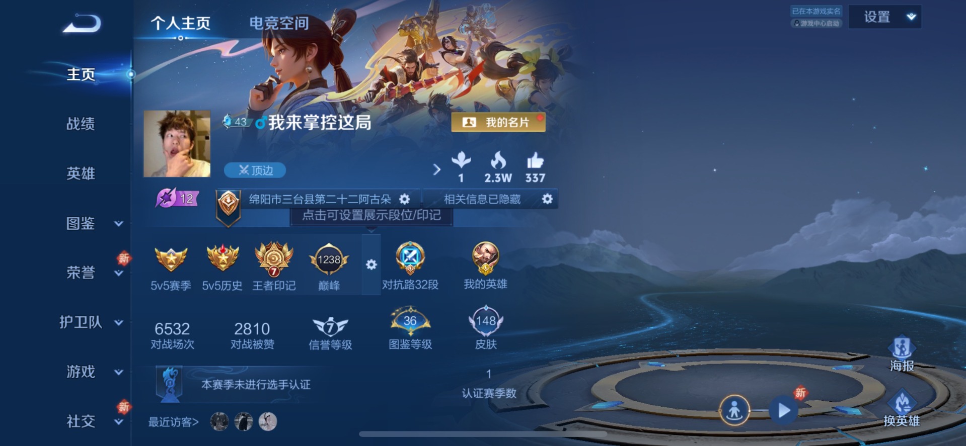 - PX_2102271-贵族等级: V4 英雄数: 60 皮肤数: 43 传说皮: 记忆之芯 限定皮: 鸣野蒿