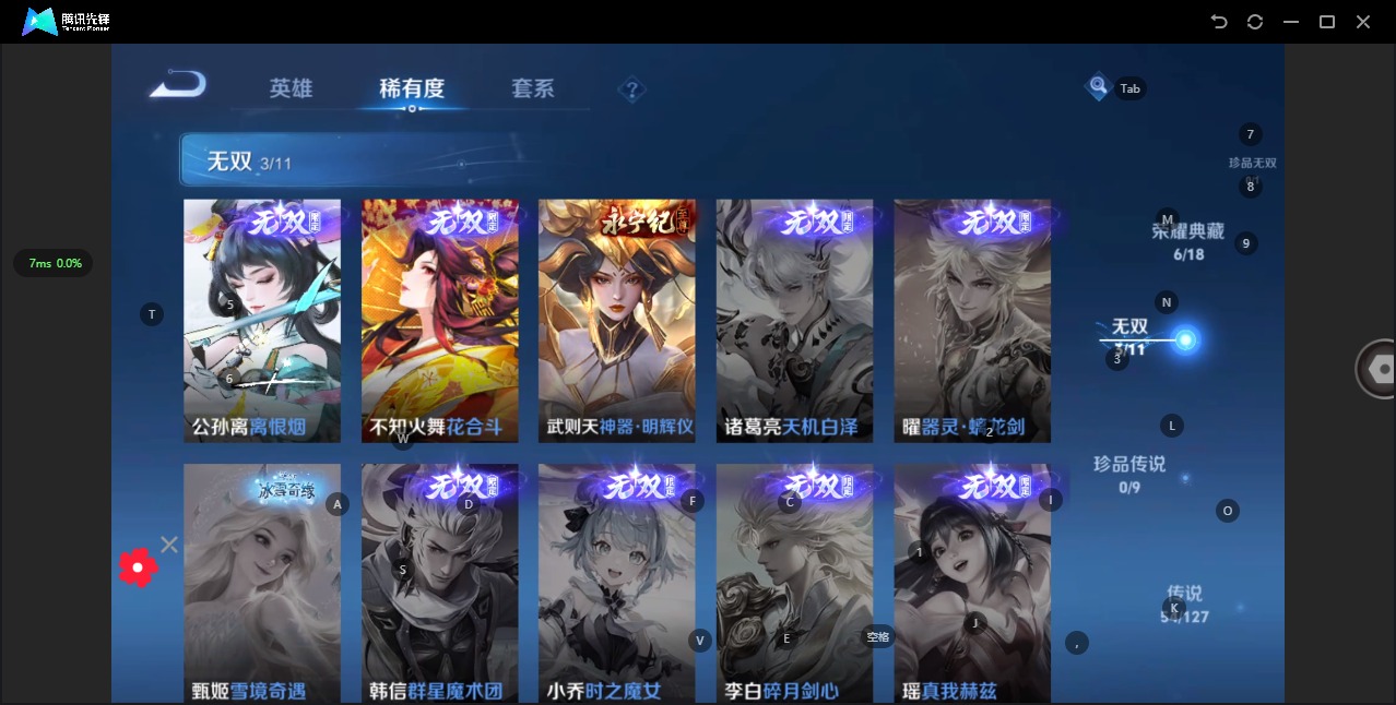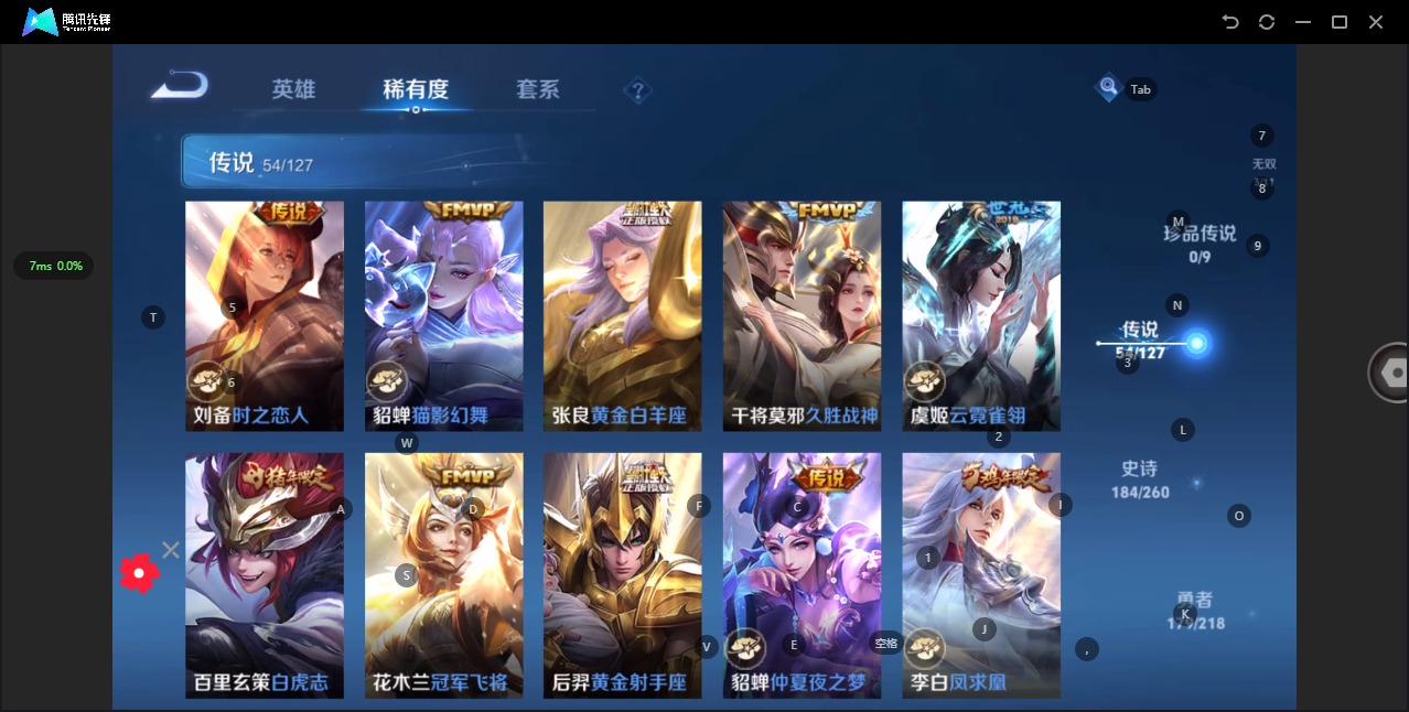 - [11348100]V7 4传说 123英雄 131皮肤 可修改实名 优质装备:黄金狮子座,久胜战神,一念神魔 传说皮:幻光神枪 限定皮:梅西,遇见飞天,李小龙,逐梦之光,猪悟能,大圣娶亲 史诗皮:紫霞仙子,白龙吟,黄金分割率,时之恋人-孙尚香,乱世虎臣,修罗,功夫厨神,鬼剑武藏,心灵战警,缤纷独角兽,水晶猎龙者,圣诞恋歌,鹰眼统帅,魅力维加斯