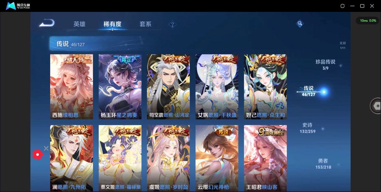 [11883406]V10 2典藏 1无双 3珍品传说 46传说 126英雄 414皮肤 典藏英雄武则天 女号 可修改实名 优质装备:幻阙歌(貂蝉典藏),真我赫兹(瑶)(瑶无双),拾光映像(瑶典藏),江户川柯南,怪盗基德,器灵·落星盏,冠军飞将,云鹰飞将(小将军),黄金白羊座,猫影幻舞,久胜战神,一念神魔,云霓雀翎,末日机甲-孙尚香(绿蚂蚱),地狱火,仲夏夜之梦(大飞蛾),音你心动-小乔,海洋之心,飞鸢探春,音你心动-周瑜,胖达荣荣,乞巧织情,游龙清影(小青龙),淬星耀世,超时空战士-狄仁杰,遇见胡旋,挚爱之约,山海·炽霜斩(李信年限),山海·琳琅生(小乔年限),燃星之曲,浮生妄,艾琳觅芳踪,朵莉亚心动手记,牧神诗旅 传说皮:乘龙·问璇玑(孙尚香年限),貂蝉曦玄引,续相思,星之鸣奏,幻光神枪 珍宝阁皮:妄想食味,女武神 限定皮:愿照·九州拓(澜年限),愿照·福禄聚(蔡文姬年限),愿照·岁时盈(虞姬年限),愿照·山河定(司空震年限),愿照·众生和(妲己年限),愿照·千秋盛(女娲年限),逐霄战戟,映山客,陌上桑,鸣野蒿,太华(伽罗年限),异界灵契(白毛香),傲雪梅枪,寅虎·展翼(孙膑年限),绯月行,时之彼端,白鹤梁神女,魔法小厨娘,神威(电光马子),山海·碧波行(瑶年限),至美·乘鲤谣,高山流水,天狼运算者,梁祝,天狼溯光者,逐梦之影,孙行者,猪悟能,青春决赛季,乒乒小将,蜜橘之夏,匿光追影者,女儿国国王,时之祈愿-瑶(瑶传限),神器·万象笔 史诗皮:苍鳞隐世,器灵·浮梦炉,糖绘人间,狼魂孤将,绮世丹青,化蝶舞,星界战将,谪仙醉月,龙之律动,茶境仙,怒海争锋,炽弈燎原,破空之剑,战舞者,涂山红红,东方月初,埋骨钱,芈月浮光幕影,海诺心动手记,琥珀纪元伽罗,夜落电台,决胜骁骑,奇遇星旅,蔬乡物语(鲁班七号),百相守梦-百里守约,百相守梦-黄忠,遇见神鹿,紫霞仙子,白龙吟,黄金分割率,特工魅影,千年之狐,永昼,江河有灵,匿光侦查者,魅语,百解令(蒙犽),高渐离燃音魔法,蒙恬荣光圣徽,无限星赏官,冰冠公主,青蛇,偶像歌手,白蛇,晚萤,银翎春语,末日机甲-吕布,猫狗日记-孙策,猫狗日记-大乔,时之恋人-孙尚香,乱世虎臣,节奏热浪,修罗,女仆咖啡,摇滚巨星,水果甜心,绅士熊喵,天才门将,星夜王子,心灵骇客,时之奇旅-安琪拉,功夫厨神,德古拉伯爵,暗隐猎兽者,鬼剑武藏,心灵战警,