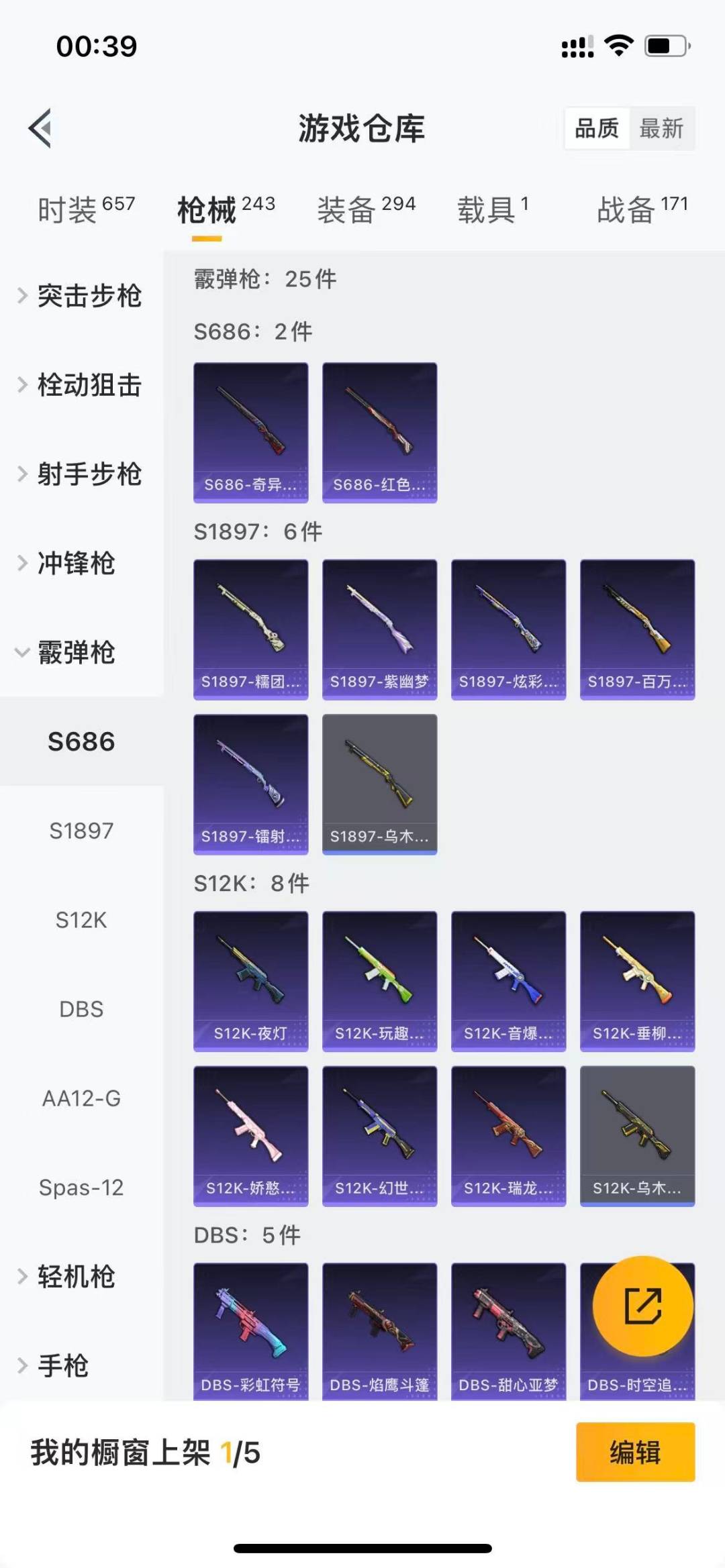AKM-奇异狩猎者,M416-黄金龙骨,M762-瑞龙福将,M762-奇异狩猎者,M24-奇异狩猎者,AWM-黄金龙骨,S686-奇异狩猎者