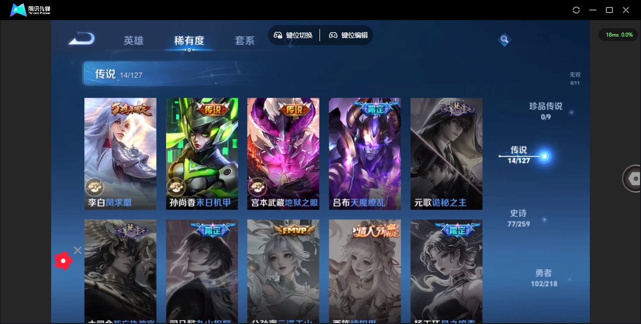 - [12112005]V10 4典藏 1珍品传说 60传说 125英雄 471皮肤 可修改实名 优质装备:天鹅之梦(小乔典藏),鸣剑·曳影,九霄神辉(木兰典藏),弑枪猎影(韩信典藏),器灵·落星盏,黄金狮子座,黄金射手座,云鹰飞将(小将军),猫影幻舞,炽阳神光,云霓雀翎,仲夏夜之梦(大飞蛾),零号·赤焰,地狱之眼,飞鸢探春,李逍遥,淬星耀世,超时空战士-狄仁杰,遇见胡旋,无双飞将,音你闪耀(rap皮),碎云,神器·狴犴令,山海·炽霜斩(李信年限),山海·琳琅生(小乔年限),山海·苍雷引(电光曜子),炽翼辉光(娃娃菜牛角包),燃星之曲,画中仙,浮生妄,鹤归松栖(云缨),惊梅引,遇见神鼓,大乔-时之奇旅,永恒水手月亮,夜礼服假面,澜逐花归海,艾琳觅芳踪,金乌负日 传说皮:乘龙·问璇玑(孙尚香年限),乘龙·铭钟鼎(赵云年限),乘龙·淬吴钩(孙策年限),貂蝉曦玄引,吕布曦玄引,典韦战鼓燎原,落雪白狼,幻光神枪 珍宝阁皮:妄想食味,蔷薇恋人,女武神 限定皮:愿照·九州拓(澜年限),愿照·岁时盈(虞姬年限),白虎志(电光耗子),武陵仙君(小桃花),异界灵契(白毛香),傲雪梅枪,前尘镜,绯月行,时雨天司(水龙头),神威(电光马子),山海·碧波行(瑶年限),无限倾心-项羽,瑞麟志(木兰年限),至美·乘鲤谣,至美·化雀舞,影龙天霄,高山流水,诗剑行,无限倾心-虞姬,匿光决锋者,怒海麟威,五谷丰年,青龙志(铠年限),冰锋战神,游园惊梦,梁祝,御风骁将(吕布年限),天狼狩猎者,龙胆,逐梦之星,烈魂,岱宗(典韦年限),天狼溯光者,虎魄,逐梦之音,李小龙,玄武志(苏烈年限),朱雀志(守约年限),如梦令-嫦娥,如梦令-后羿,霸王别姬-虞姬,纯白花嫁,孙行者,大圣娶亲,青春决赛季,乒乒小将,寅虎·御盾(廉颇年限),寅虎·心曲(虎婆),寅虎·赤拳(老虎年限),百木心枪,深海之息(深海大菠萝),枫霜尽,神器·万象笔,山海·玄木吟(马可年限) 史诗皮:器灵·浮梦炉,狼魂孤将,灵蛊蚀心,星界战将,石田雨龙,怒海争锋,埋骨钱,琥珀纪元伽罗,奇遇星旅,蔬乡物语(鲁班七号),曹操夜都魔契,超元猎域,乘龙·聚宝船(安琪拉年限),乘龙·忆丹青(大乔年限),百相守梦-百里守约,百相守梦-黄忠,织梦人,紫霞仙子,电玩小子(小书包),白龙吟,黄金分割率,特工魅影,千年之狐,永昼,江河有灵,匿光侦查者,鹤归松栖(赵怀真),真我赫兹(镜),