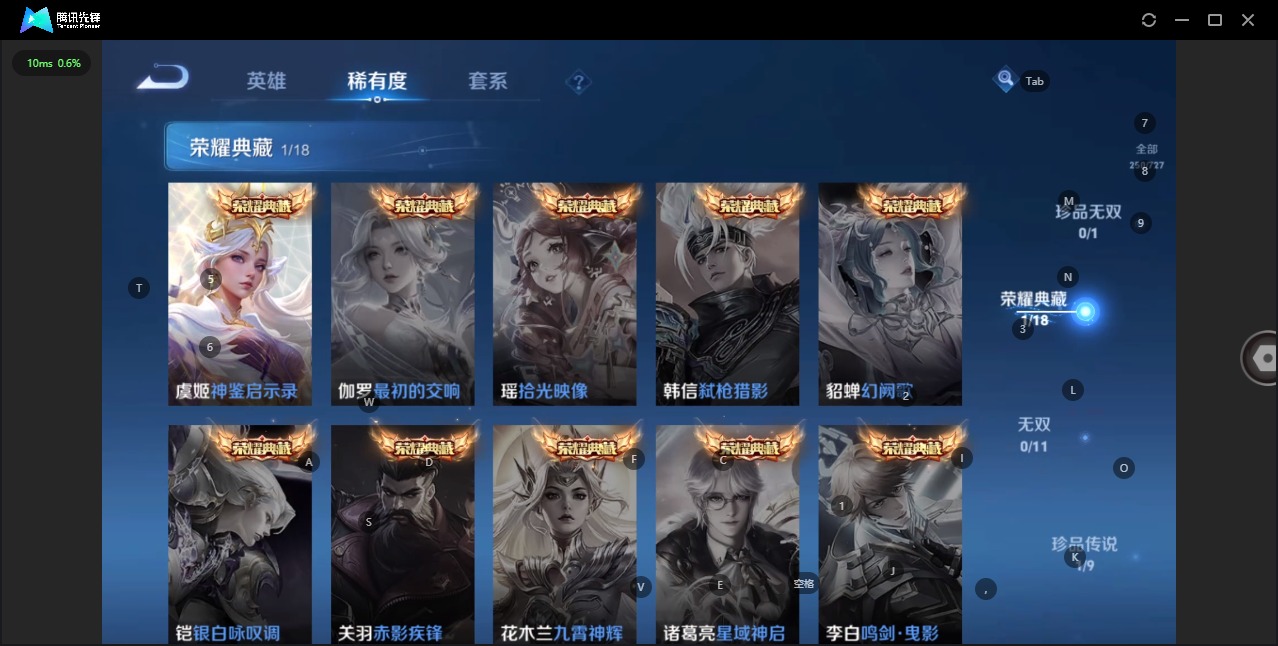 - [12076451]V6 5传说 121英雄 244皮肤 可修改实名 优质装备:云霓雀翎,地狱火,挚爱之约 传说皮:幻光神枪 珍宝阁皮:女武神,玩趣恶龙 限定皮:逐霄战戟,至尊宝,武陵仙君(小桃花),遇见飞天,高山流水,五谷丰年,游园惊梦,梁祝,天狼狩猎者,李小龙,奇迹圣诞,猪悟能 史诗皮:芈月浮光幕影,千年之狐,江河有灵,蒙恬荣光圣徽,无限星赏官,猫狗日记-孙策,乱世虎臣,节奏热浪,水果甜心,功夫厨神,德古拉伯爵,鬼剑武藏,地狱岩魂,纤云弄巧,繁星吟游(呼啦呼啦),拒霜思,缤纷独角兽,水晶猎龙者,曙光守护者,金属风暴,原初追逐者,圣诞狂欢,鹰眼统帅,王者之锤,魅力维加斯,黎明之约,无心,未来纪元-赵云