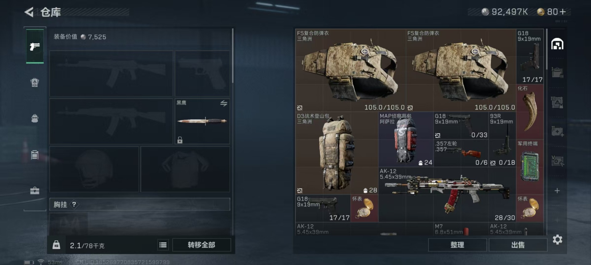 - [12064017]总资产:138.5M 5传说枪械 哈夫币:70.005K 可二次 可修改实名 烽火地带段位:黄金 全面战场段位:上等兵 传说武器皮肤:M16A4突击步枪-狩猎时刻,勇士冲锋枪-能天使-午夜邮差,Vector冲锋枪-狩猎时刻,G3战斗步枪-狩猎时刻,复合弓-黑-天际线