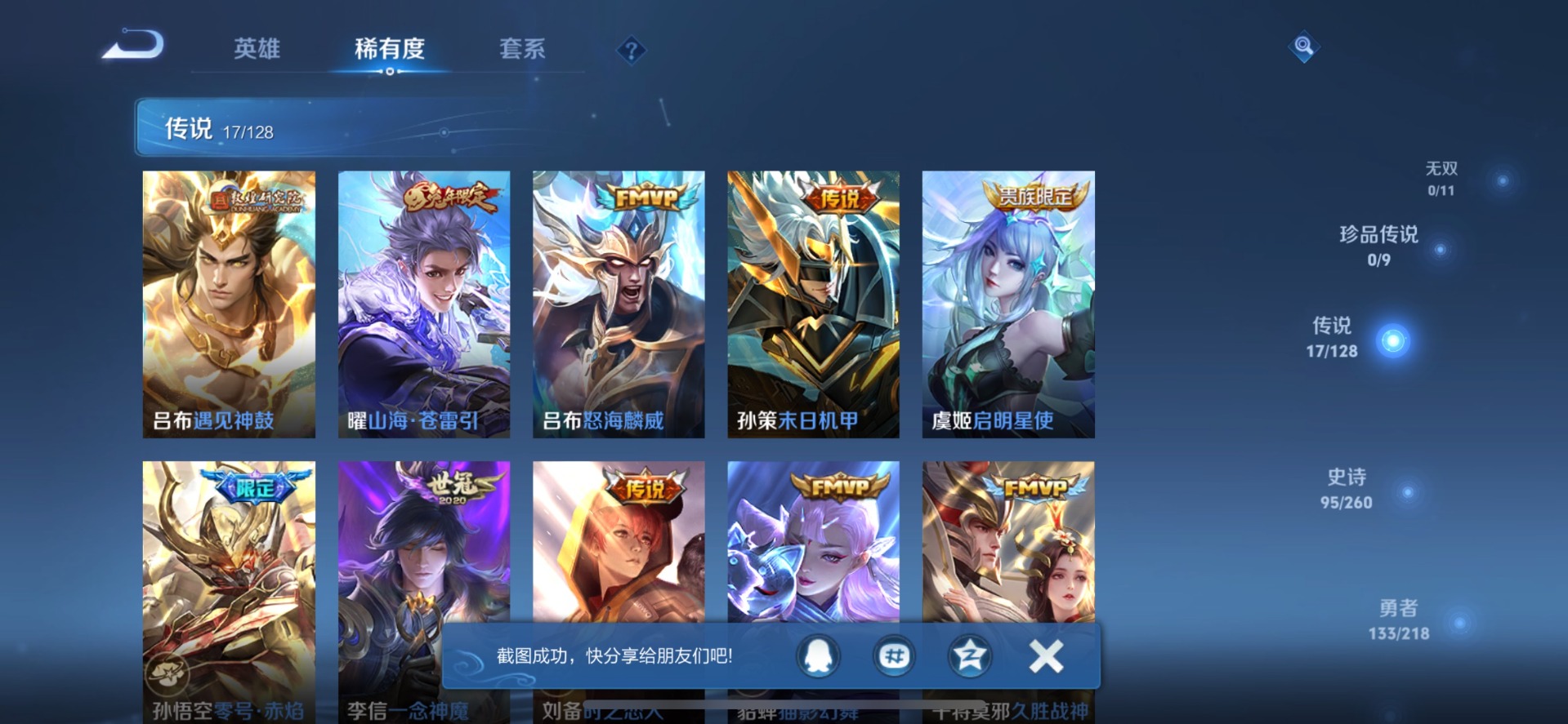 - PX_2035506-安卓Q 【包人脸】 英雄数量:124 皮肤数量:164 贵族等级:贵族V7 荣耀典藏1 珍品传说1 传说品质10 史诗品质45银白咏叹调 时之奇旅孙策 玄雷天君 愿照·众生和 愿照·九州拓 时之恋人男 胖达荣荣 超时空战士男 鸣野蒿 战鼓燎原 乘龙铭钟鼎 鹤羽星尊 天才门将 鬼剑武藏 魅力维加斯 皇家上将 繁星吟游 暗隐猎兽者 幽灵船长 圣诞狂欢 金属风暴 器灵·浮梦炉 驭风
