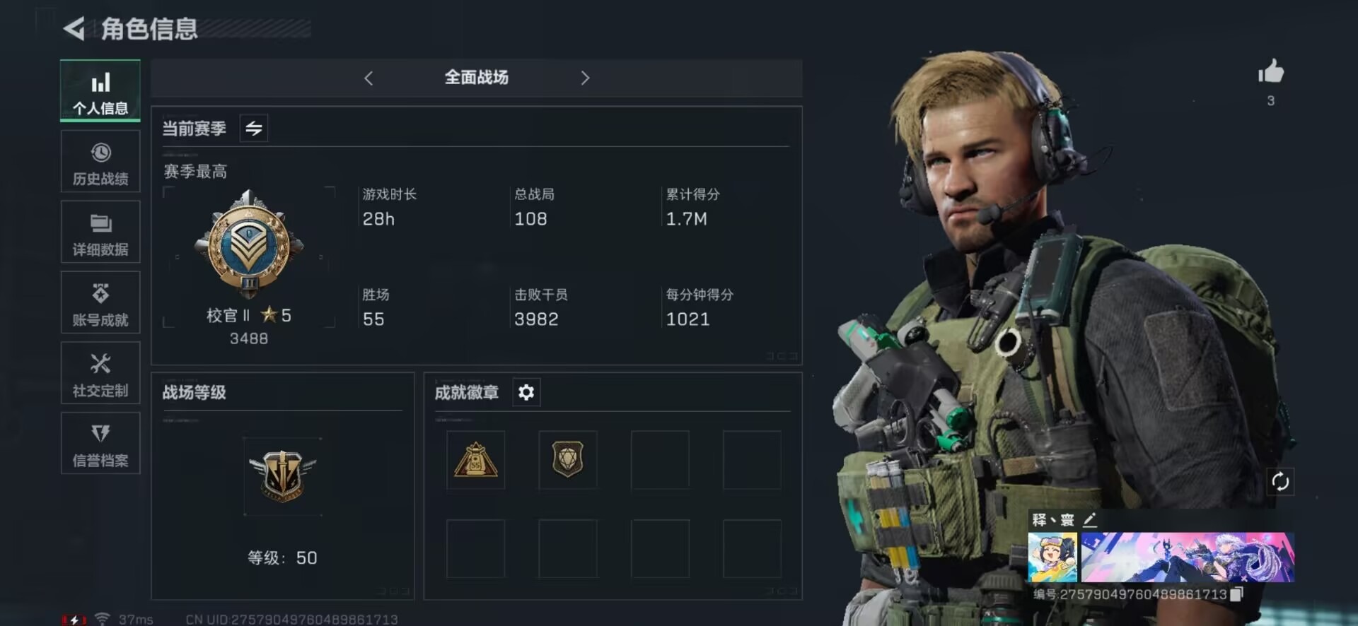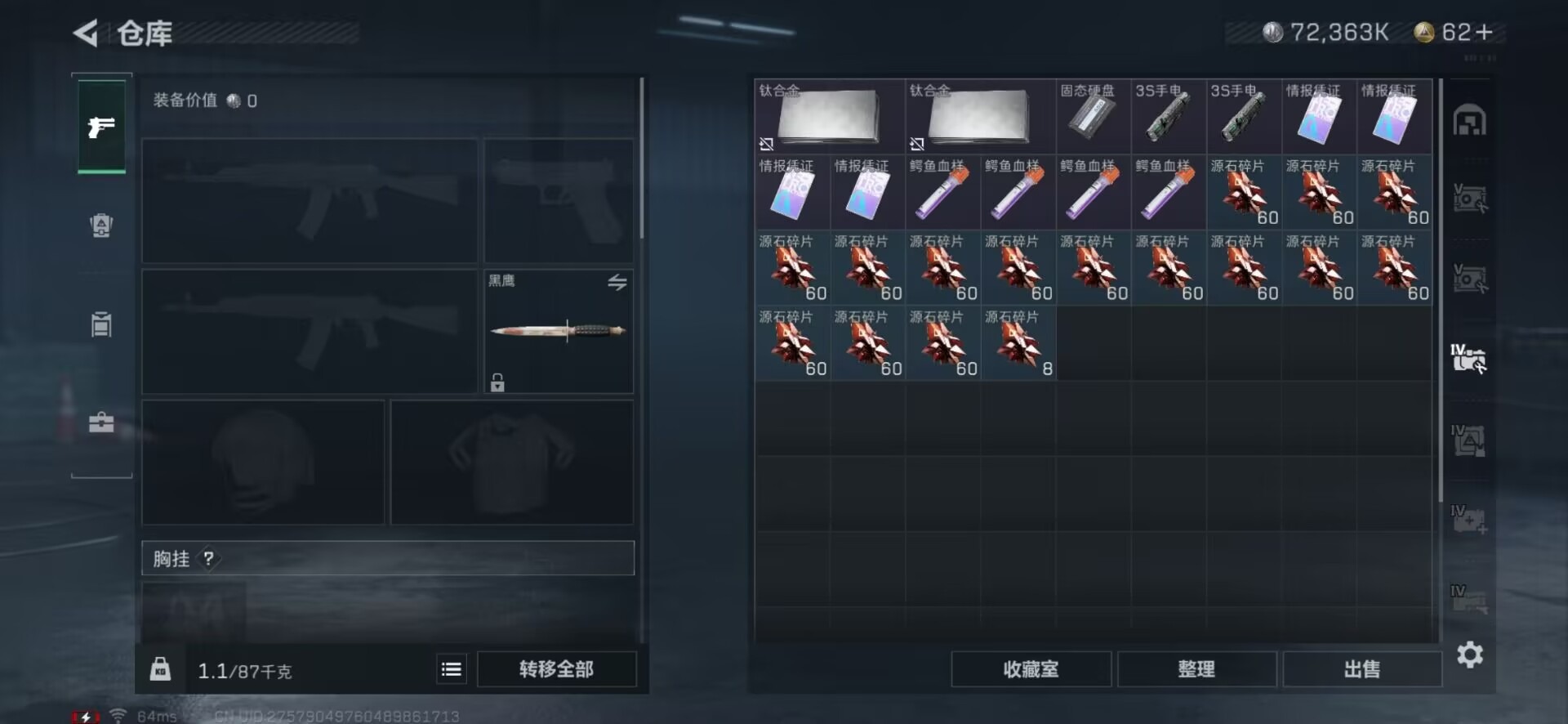 - [11410666]总资产:47.5M 1近战传说 7传说枪械 哈夫币:4.526K 可二次 可修改实名 优质装备:近战-北极星,顶级安全箱(3x3) 烽火地带段位:钻石 全面战场段位:无段位 传说武器皮肤:勇士冲锋枪-能天使-午夜邮差,复合弓-黑-天际线,M4A1突击步枪-阿米娅,725双管霰弹枪-送葬人-无题密令,K437突击步枪-北极星,QCQ171冲锋枪-北极星 史诗武器皮肤:M700狙击步枪-蝮蛇,M16A4突击步枪-竞赛选手,PKM通用机枪-荒野求生,SR-3M紧凑突击步枪-荒野求生,SV-98狙击步枪-林中猎手,SVD狙击步枪-荒野求生,M250通用机枪-囚徒,SV-98狙击步枪-囚徒,腾龙突击步枪-无垢,MP7冲锋枪-无垢,PSG-1射手步枪-无垢,Vector冲锋枪-阿萨拉文明,SVD狙击步枪-阿萨拉工艺,S12K霰弹枪-曙光