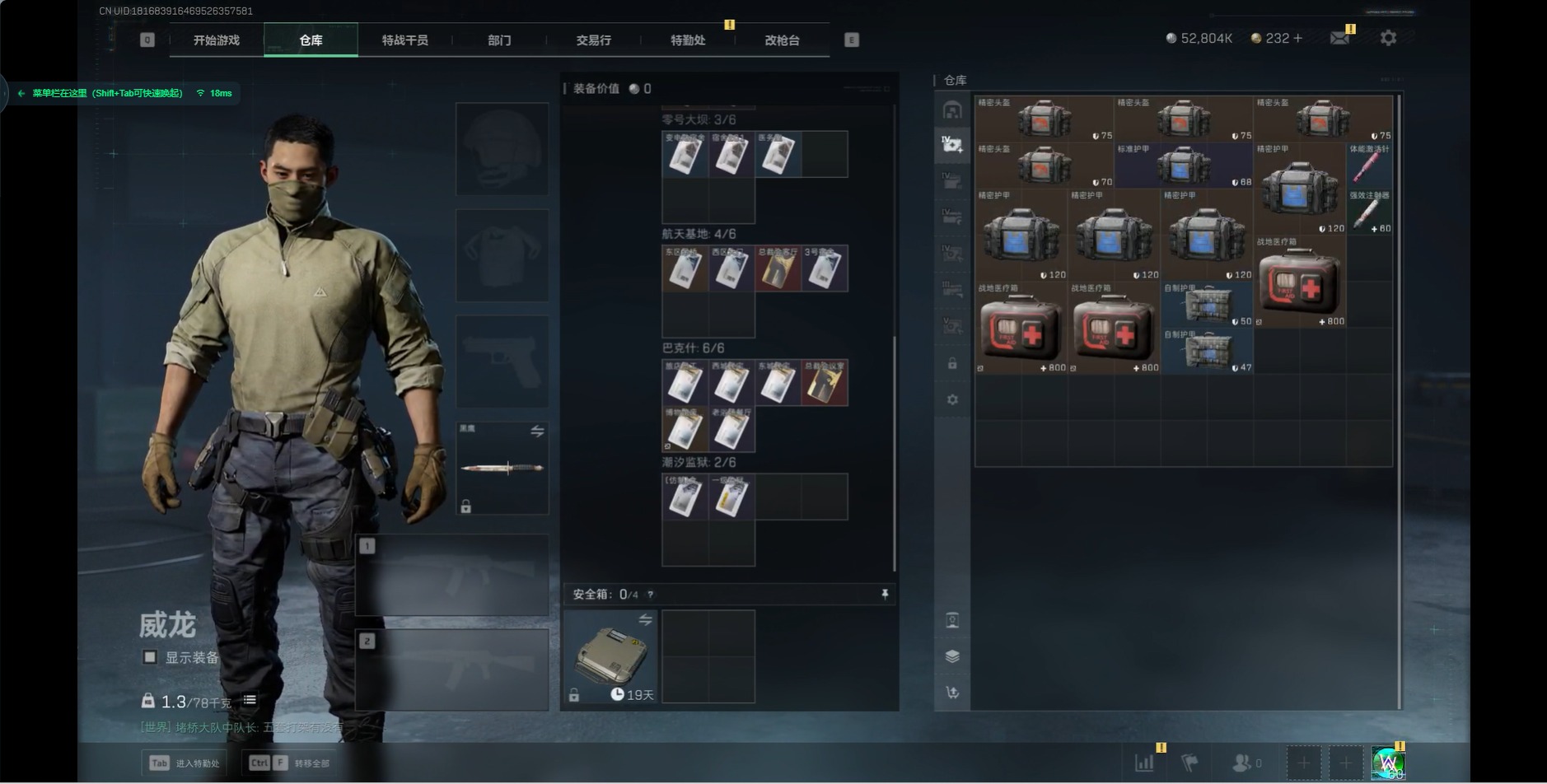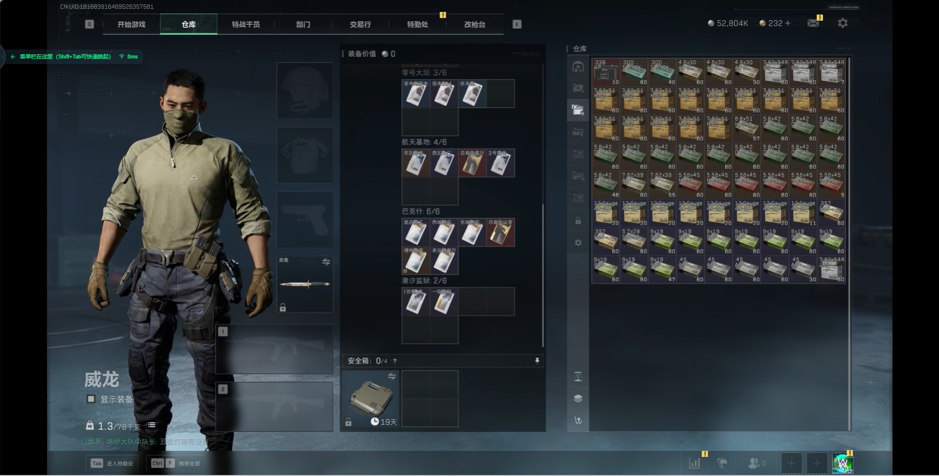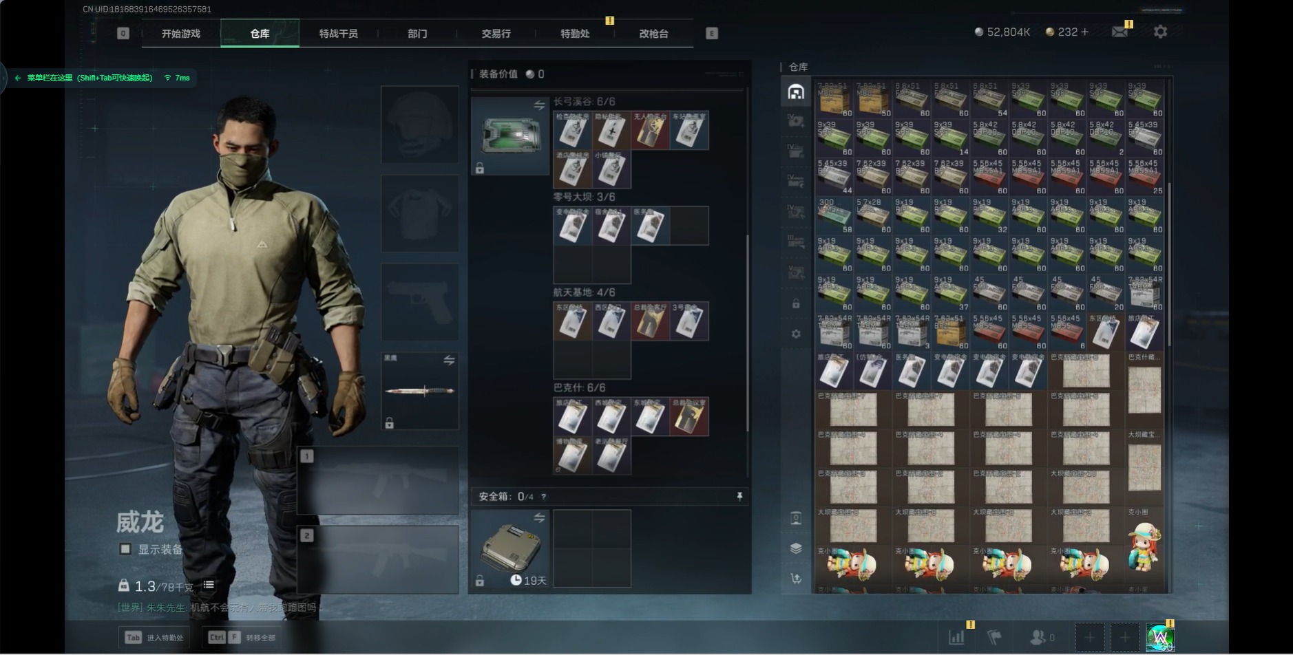 [11883684]总资产:173.7M 10传说枪械 哈夫币:52.804K 进阶安全箱(2×2)9.15号到期 可二次 可修改实名 烽火地带段位:钻石 全面战场段位:无段位 传说武器皮肤:93R-捞点薯条,AWM狙击步枪-捞点薯条,腾龙突击步枪-捞点薯条,AK-12突击步枪-特斯拉线圈,CAR-15突击步枪-阿米娅,SR-3M紧凑突击步枪-特斯拉线圈,UZI冲锋枪-特斯拉线圈,勇士冲锋枪-能天使-午夜邮差,复合弓-黑-天际线,M4A1突击步枪-阿米娅 史诗武器皮肤:M700狙击步枪-蝮蛇,M16A4突击步枪-竞赛选手,勇士冲锋枪-深海恐惧,AKM突击步枪-林中猎手,M1014霰弹枪-林中猎手,SV-98狙击步枪-林中猎手,PTR-32突击步枪-英雄,M250通用机枪-囚徒,SCAR-H战斗步枪-囚徒,QBZ95-1突击步枪-曙光