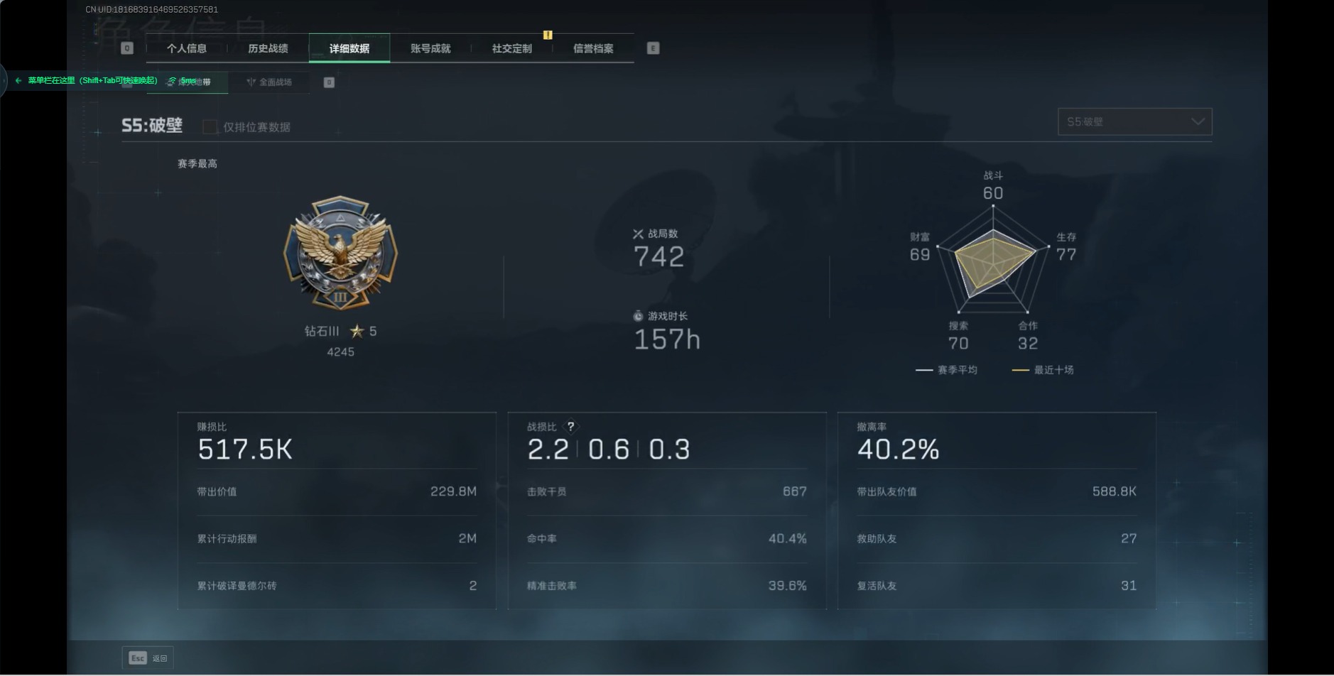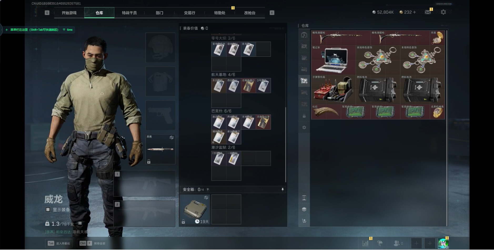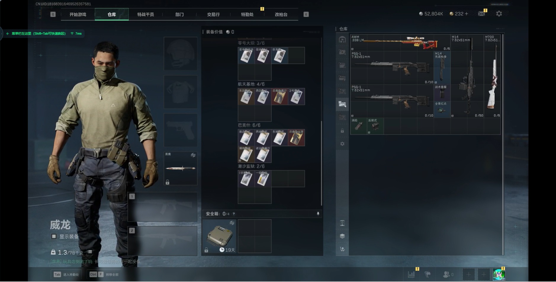 [11883684]总资产:173.7M 10传说枪械 哈夫币:52.804K 进阶安全箱(2×2)9.15号到期 可二次 可修改实名 烽火地带段位:钻石 全面战场段位:无段位 传说武器皮肤:93R-捞点薯条,AWM狙击步枪-捞点薯条,腾龙突击步枪-捞点薯条,AK-12突击步枪-特斯拉线圈,CAR-15突击步枪-阿米娅,SR-3M紧凑突击步枪-特斯拉线圈,UZI冲锋枪-特斯拉线圈,勇士冲锋枪-能天使-午夜邮差,复合弓-黑-天际线,M4A1突击步枪-阿米娅 史诗武器皮肤:M700狙击步枪-蝮蛇,M16A4突击步枪-竞赛选手,勇士冲锋枪-深海恐惧,AKM突击步枪-林中猎手,M1014霰弹枪-林中猎手,SV-98狙击步枪-林中猎手,PTR-32突击步枪-英雄,M250通用机枪-囚徒,SCAR-H战斗步枪-囚徒,QBZ95-1突击步枪-曙光