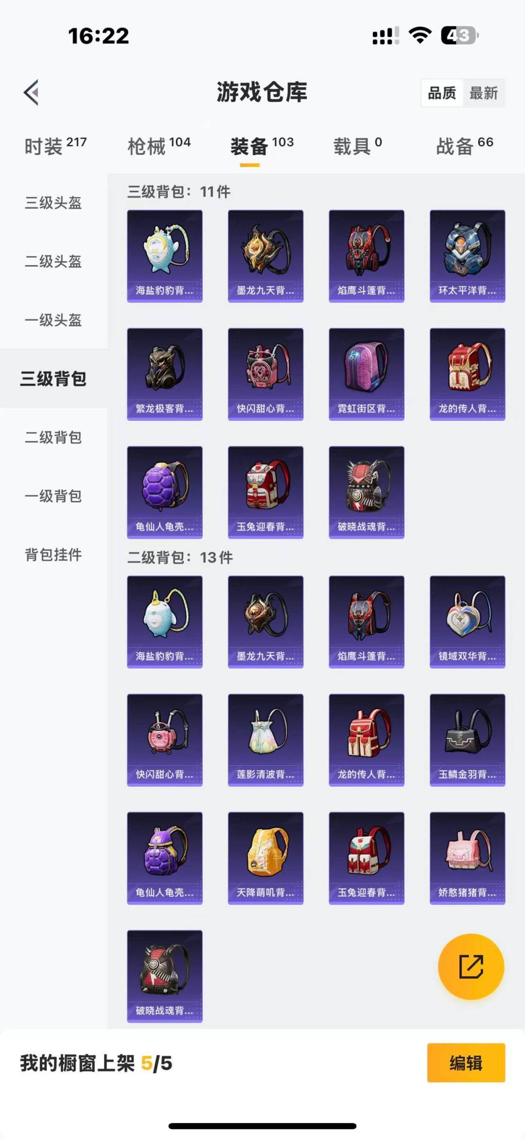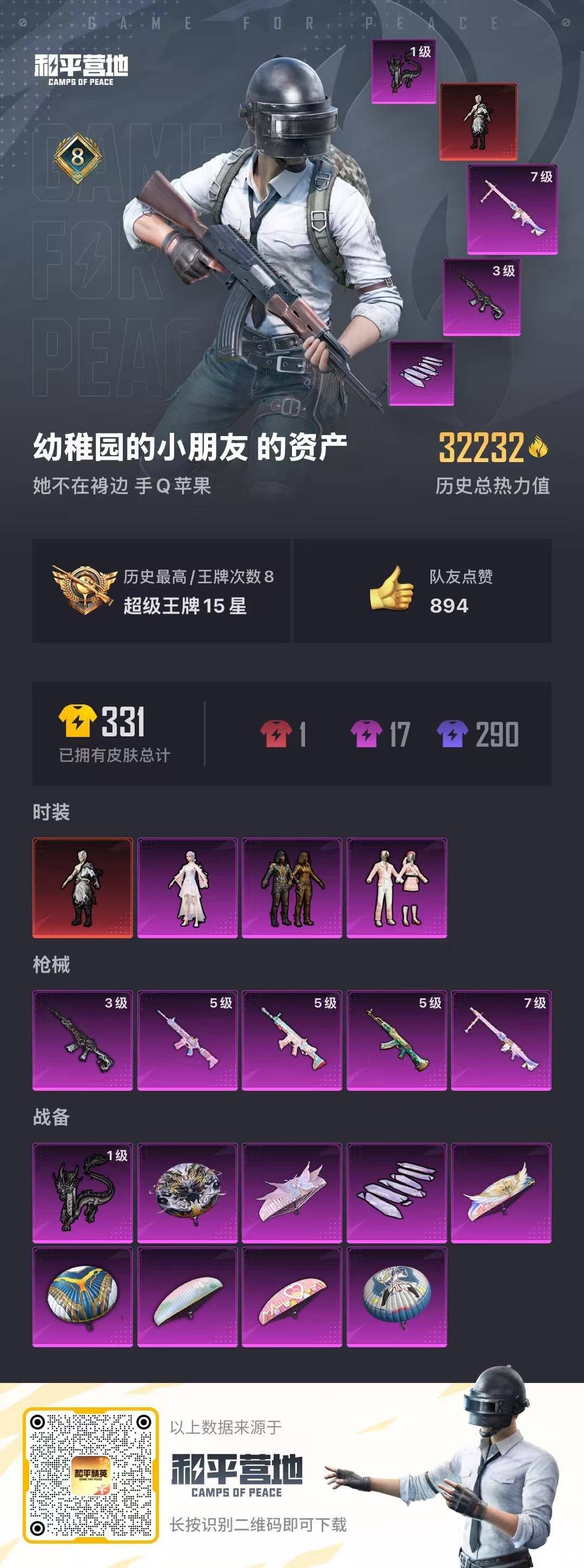 [11883713]1红装 3粉装 5特效枪 8印记 可二次 可修改实名 优质装备:二级墨龙九天-敖渊(2级敖渊2级野人),墨龙九天-敖渊(野人),MG3梦幻舞会,AKM绿萝繁花,SCAR-L-锦绣绵绵,七级MG3-梦幻舞会,M416电玩时刻,M416墨龙九天 热门装扮:第五大道,繁龙极客,烟云彩露 五级特效枪:五级M416-电玩时刻,五级SCAR-L-锦绣绵绵,五级AKM-绿萝繁花 三级特效枪:三级M416-墨龙九天 紫色装扮:SS22特训,莱茵河畔,SS23特训,娇憨猪猪,萌趣咩咩,SS21特训,SS33特训套装,青涩时光,灵公主,SS20特训,SS15特训,SS14特训,都市漫游者,长空猛禽,霓虹街区,蓝色守护者,蓝色运动,魅力单车,鹤鸣,麻辣教官,龙的传人,龟仙人,柠萌假日,海岛探路者,涂山之恋,幻世战舞者,白熊同盟,破蛋小黄鸡,空岛之星,SS28特训,玉兔迎春,竞技名士,情公主,惊鸿侠骨,神气柴柴,懵萌河马,SS24特训(SS24特训套装),SS25特训,锦衣飞扬,焰鹰斗篷,幻羽潜行,幽夜迷踪,SS27特训,无暇誓言,华灯初上,SS26特训,春光漫游,快闪甜心,绯格组合,萌黄之夏 优质战备:墨龙九天降落伞,龙翔九天飞行器,江南烟雨降落伞,莲影清波降落伞,镜域双华降落伞,镜域双华-灵镜之阶,环太平洋降落伞,飒粉甜心降落伞,银刃赛罗降落伞