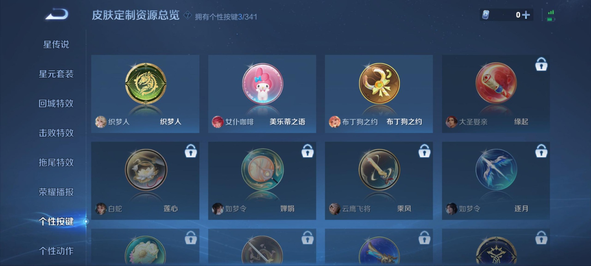 刘邦德古拉伯爵,夏侯惇乘风破浪,阿轲节奏热浪,铠曙光守护者,伽罗箭羽风息,孙尚香时之恋人,孙策猫狗日记,司马懿暗渊魔法,刘禅绅士熊喵,宫本武藏鬼剑武藏,兰陵王暗隐猎兽者,貂蝉圣诞恋歌,花木兰水晶猎龙者,安琪拉心灵骇客,蒙犽百解令,程咬金功夫厨神,韩信白龙吟,百里守约特工魅影,李元芳逐浪之夏,墨子龙骑士,墨子金属风暴,嫦娥拒霜思,橘右京修罗