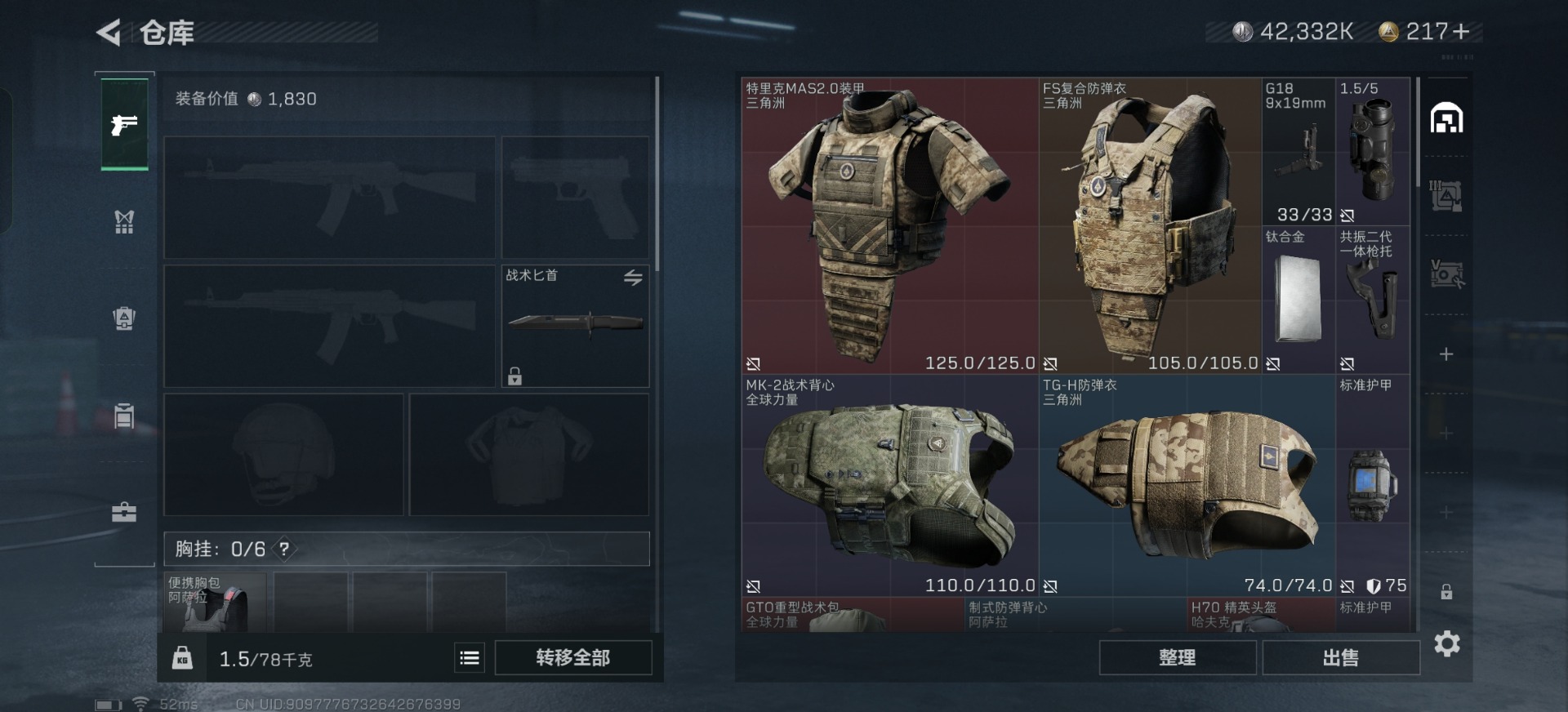 - [12256572]总资产:195.2M 2干员外观 2近战传说 22传说枪械 哈夫币:13.348K 高级安全箱(2×3)9.15号到期 可二次 可修改实名 优质装备:近战-黑海,近战-北极星 烽火地带段位:三角洲巅峰 全面战场段位:上等兵 传说武器皮肤:AKM突击步枪-流光铂影,AK-12突击步枪-夜鹰,UZI冲锋枪-流光铂影,G18-飞虎,G3战斗步枪-流光铂影,CAR-15突击步枪-阿米娅,复合弓-黑-天际线,AWM狙击步枪-捞点薯条,QCQ171冲锋枪-北极星,腾龙突击步枪-捞点薯条,93R-捞点薯条,勇士冲锋枪-能天使-午夜邮差,725双管霰弹枪-送葬人-无题密令,K437突击步枪-北极星,MP5冲锋枪-黑海,AUG突击步枪-游乐场,M870霰弹枪-游乐场,M250通用机枪-游乐场,QJB201轻机枪-黑海,M4A1突击步枪-蚀金玫瑰 干员外观:红狼-蚀金玫瑰,蜂医-送葬人·无题密令(S5)