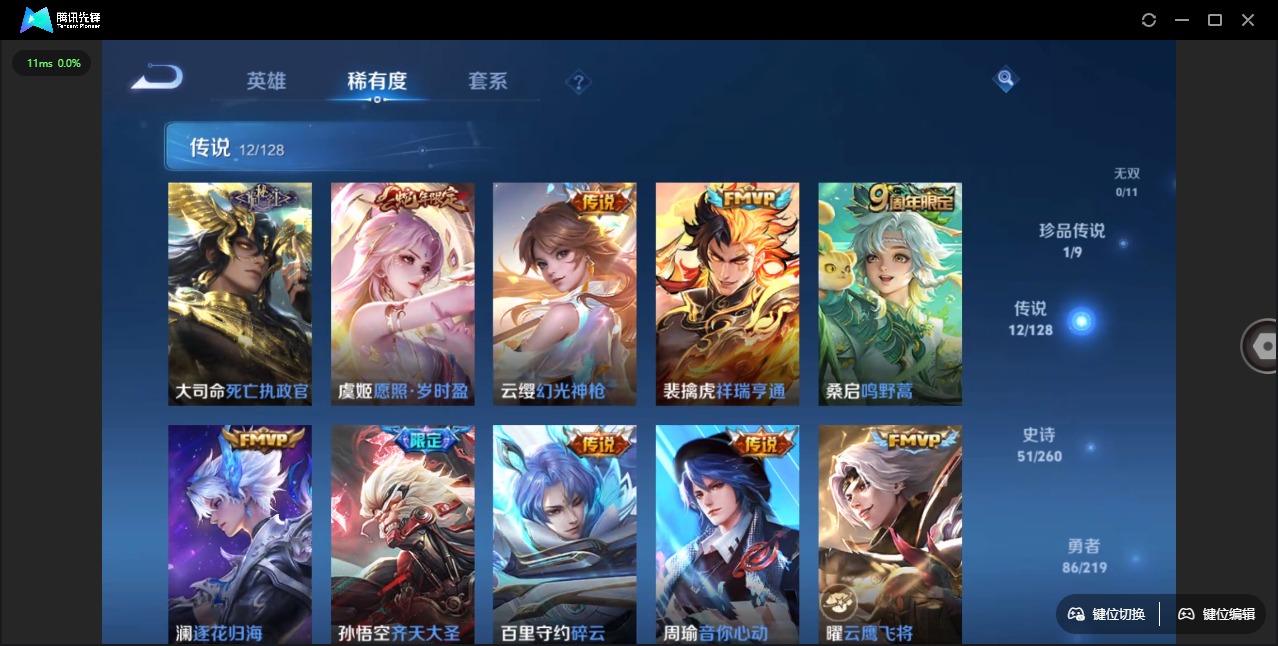 - PX_2094652-56 安卓QQ/尊贵铂金/145皮肤/123英雄/0典藏/0珍品无双/0无双/0珍品传说/8传说/45史诗/7稀有英雄 【8 传说皮肤】鹤归松栖 云缨,零号·赤焰 孙悟空,炽阳神光 镜,无尽星芒 后羿,挚爱之约 孙策,山海·炽霜斩 李信,绛天战甲 铠,妄想奇谈 上官婉儿, 【45 史诗皮肤】末日机甲 吕布,紫霞仙子 露娜,奇遇舞章 艾琳,心灵战警 亚瑟,五谷丰年 鬼谷子,无心