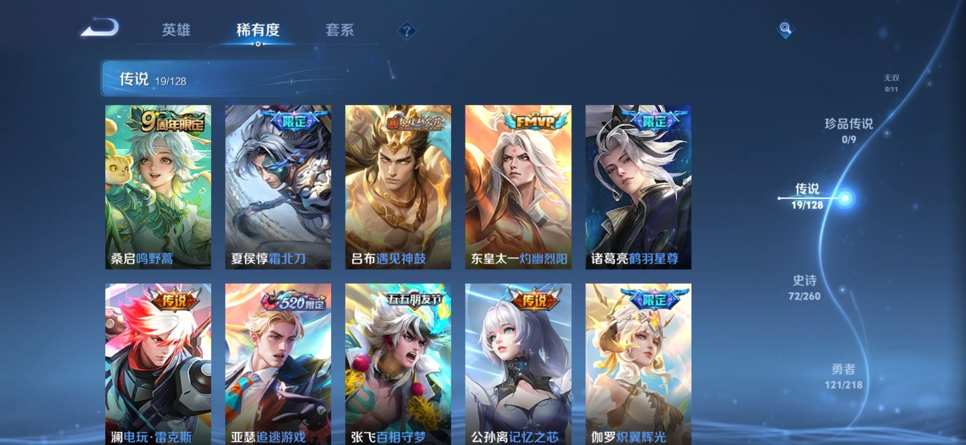 - [12050017]V10 14典藏 2无双 2珍品传说 84传说 126英雄 553皮肤 典藏英雄武则天 可修改实名 安全保护中 优质装备:天鹅之梦(小乔典藏),星空梦想(太空人),无限飓风号(高达),活力突击,杀手不太冷,大秦宣太后,鸣剑·曳影,全息碎影(猴子典藏),星域神启(倪克斯贼亮),九霄神辉(木兰典藏),赤影疾锋,银白咏叹调(倪克斯侍卫),幻阙歌(貂蝉典藏),神器·明辉仪,青丘·九尾(妲己无双),神鉴启示录,酷洛米之心,大耳狗之梦,黄金狮子座,黄金射手座,冠军飞将,云鹰飞将(小将军),绛天战甲(鸡嘴战神),黄金白羊座,猫影幻舞,久胜战神,炽阳神光,一念神魔,云霓雀翎,末日机甲-孙尚香(绿蚂蚱),地狱火,仲夏夜之梦(大飞蛾),音你心动-小乔,零号·赤焰,海洋之心,地狱之眼,飞鸢探春,音你心动-周瑜,胖达荣荣,李逍遥,乞巧织情,时之恋人-刘备(电焊工),游龙清影(小青龙),淬星耀世,超时空战士-狄仁杰,末日机甲-孙策,花朝如约(花篮子),无双飞将,碎云,天秀幻梦,神器·狴犴令,神器·明辉仪,山海·炽霜斩(李信年限),山海·琳琅生(小乔年限),山海·苍雷引(电光曜子),炽翼辉光(娃娃菜牛角包),燃星之曲,画中仙,浮生妄,记忆之芯(机甲兔),青丘·九尾,百相守梦(张飞),追逃游戏(亚瑟),追逃游戏(安琪拉),电玩·雷克斯,鹤羽星尊,灼幽烈阳,鹤归松栖(云缨),惊梅引,霜月吟,澜逐花归海,艾琳觅芳踪 传说皮:乘龙·问璇玑(孙尚香年限),乘龙·铭钟鼎(赵云年限),乘龙·淬吴钩(孙策年限),典韦战鼓燎原,九山相柳,铠冥王哈迪斯,幻光神枪 珍宝阁皮:蔷薇恋人,玩趣恶龙 限定皮:逐霄战戟,夏侯惇霜北刀,至尊宝,凤求凰(白切鸡),凤凰于飞,武陵仙君(小桃花),异界灵契(白毛香),傲雪梅枪,补天,寅虎·展翼(孙膑年限),前尘镜,星穹之声,绯月行,时之彼端,魔法小厨娘,白晶晶,时雨天司(水龙头),神威(电光马子),玄嵩(庄周年限),山海·碧波行(瑶年限),无限倾心-项羽,瑞麟志(木兰年限),影龙天霄,遇见飞天,高山流水,诗剑行,无限倾心-虞姬,齐天大圣,怒海麟威,降魔,五谷丰年,青龙志(铠年限),冰锋战神,幽恒(沐浴露),武圣,御风骁将(吕布年限),天狼狩猎者,龙胆,逐梦之星,烈魂,岱宗(典韦年限),天狼溯光者,虎魄,奔雷神使(牛魔年限),天狼绘梦者,李小龙,逐梦之光,玄武志(苏烈年限)