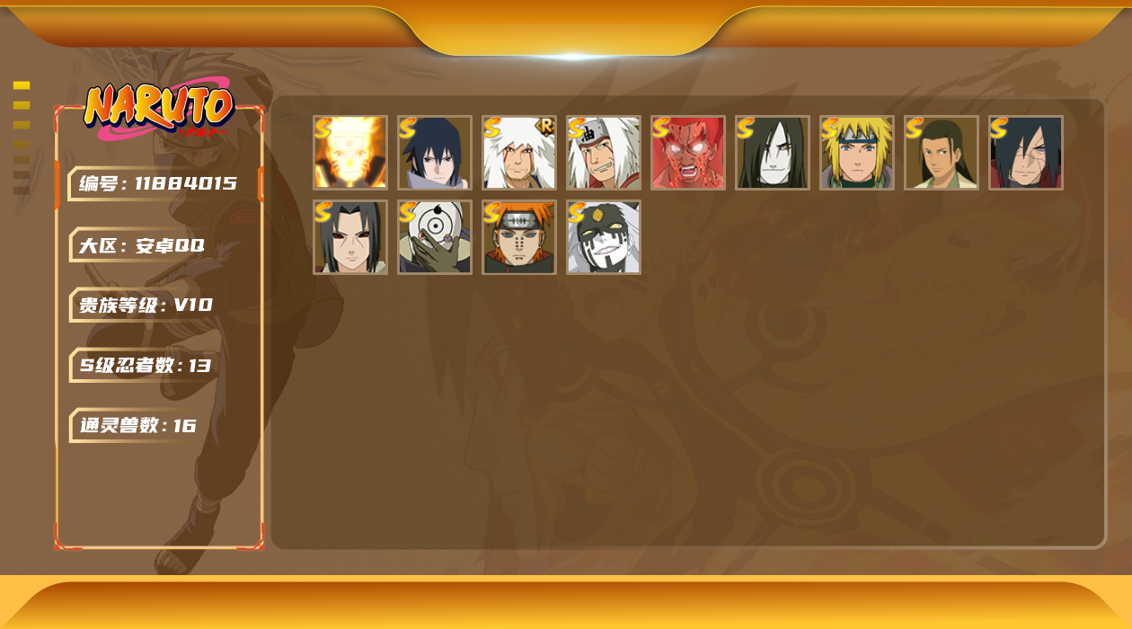 [11884015]V10 13S忍 29A忍 16通灵 794.4W战力 可二次 可修改实名 优质装备:宇智波鼬「秽土转生」,迈特凯「死门」,“宇智波斑” 「白面具」,漩涡鸣人 「九喇嘛连结」,宇智波佐助「永恒万花筒」,千手柱间·木叶创立,宇智波斑「秽土转生·解」,大筒木桃式,自来也 「传说中的三忍」 S级忍者:自来也 「舞之豪杰」,佩恩「天道」,波风水门,大蛇丸