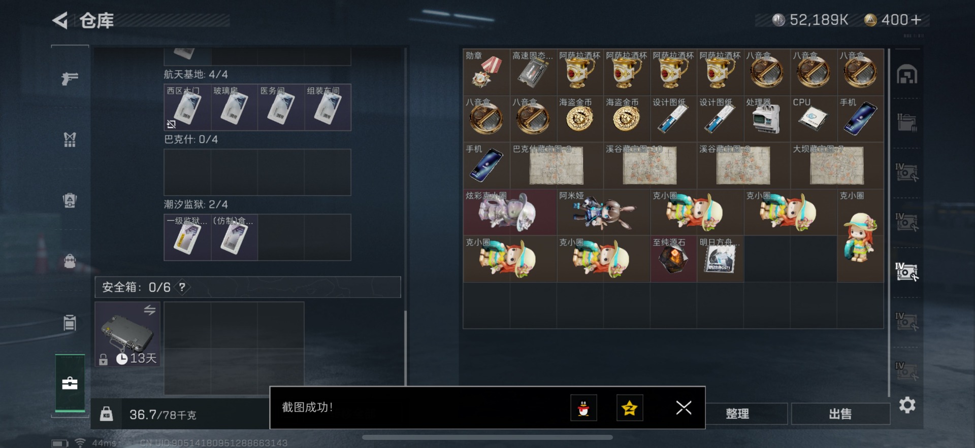 - [12090645]总资产:171.6M 12传说枪械 哈夫币:43.086K 高级安全箱(2×3)9.15号到期 可二次 可修改实名 烽火地带段位:钻石 全面战场段位:列兵 传说武器皮肤:M4A1突击步枪-阿米娅,CAR-15突击步枪-阿米娅,复合弓-黑-天际线,AWM狙击步枪-捞点薯条,腾龙突击步枪-捞点薯条,93R-捞点薯条,AK-12突击步枪-特斯拉线圈,SR-3M紧凑突击步枪-特斯拉线圈,UZI冲锋枪-特斯拉线圈,勇士冲锋枪-能天使-午夜邮差,725双管霰弹枪-送葬人-无题密令,Vector冲锋枪-能天使-午夜邮差 史诗武器皮肤:PKM通用机枪-蝮蛇,PKM通用机枪-荒野求生,SR-3M紧凑突击步枪-荒野求生,SV-98狙击步枪-林中猎手,AS Val突击步枪-典狱官,M250通用机枪-囚徒,PSG-1射手步枪-无垢