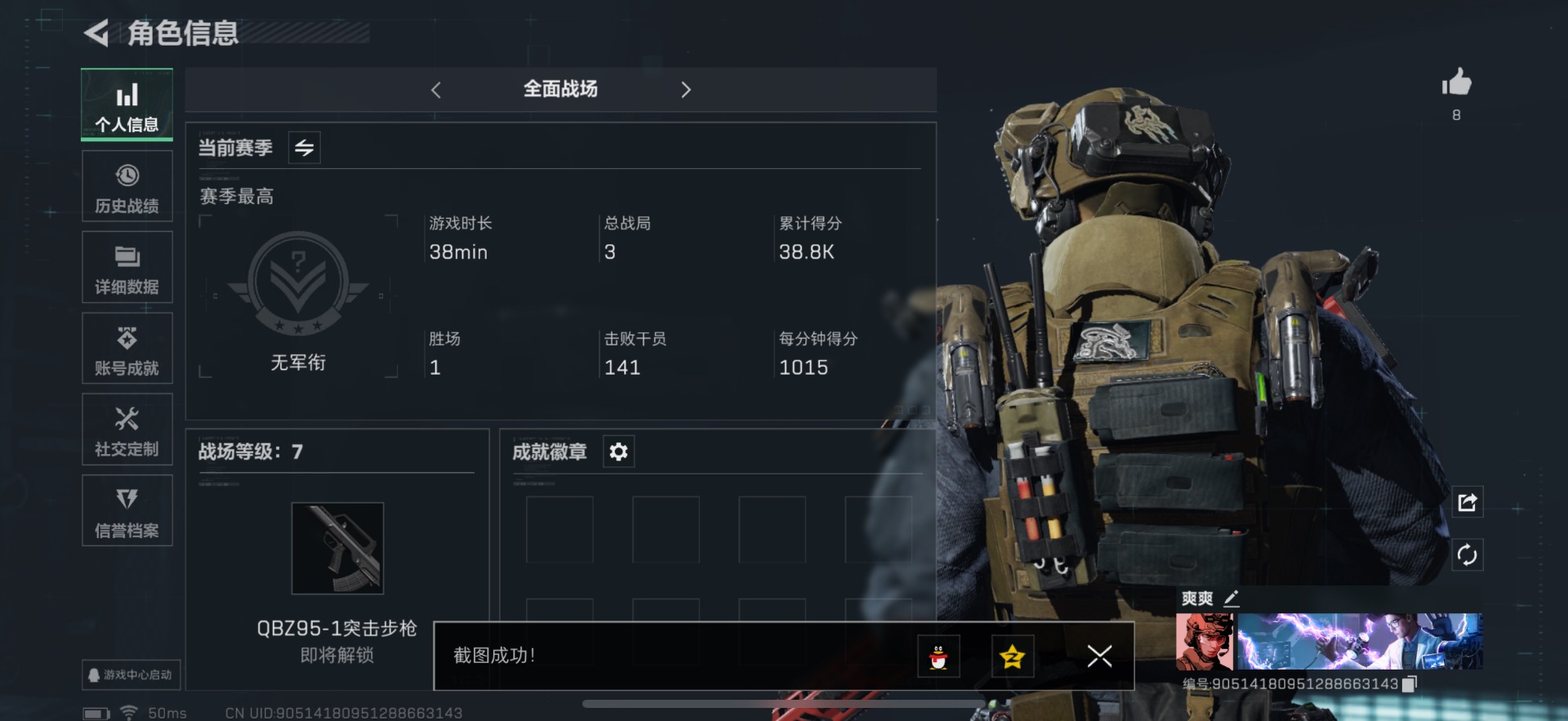 [11884027]总资产:129.9M 1干员外观 11传说枪械 哈夫币:52.189K 高级安全箱(9.17到期) 可二次 可修改实名 烽火地带段位:铂金 全面战场段位:无段位 传说武器皮肤:UZI冲锋枪-特斯拉线圈,AWM狙击步枪-捞点薯条,腾龙突击步枪-捞点薯条,93R-捞点薯条,AK-12突击步枪-特斯拉线圈,SR-3M紧凑突击步枪-特斯拉线圈,勇士冲锋枪-能天使-午夜邮差,复合弓-黑-天际线,725双管霰弹枪-送葬人-无题密令,M4A1突击步枪-阿米娅,CAR-15突击步枪-阿米娅 史诗武器皮肤:AUG突击步枪-蝮蛇,勇士冲锋枪-深海恐惧,M16A4突击步枪-竞赛选手,SV-98狙击步枪-林中猎手,SV-98狙击步枪-囚徒,腾龙突击步枪-无垢,MP7冲锋枪-无垢,SVD狙击步枪-荒野求生,SR-3M紧凑突击步枪-荒野求生,PKM通用机枪-荒野求生 干员外观:蜂医-送葬人·无题密令(S5)
