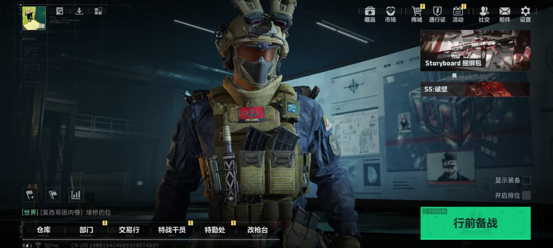 - [11685520]可二次 可修改实名 实名:可修改 高级安全箱(9.17到期) 烽火地带段位:钻石 全面战场段位:上等兵 总资产:161.4 哈夫币:8.024 传说武器皮肤:近战-黑海,SCAR-H战斗步枪-铁艺苍穹,AK-12突击步枪-夜鹰,SMG45冲锋枪-骑士,QJB201轻机枪-黑海,MP5冲锋枪-黑海,725双管霰弹枪-送葬人-无题密令,K437突击步枪-北极星,M4A1突击步枪-蚀金玫瑰