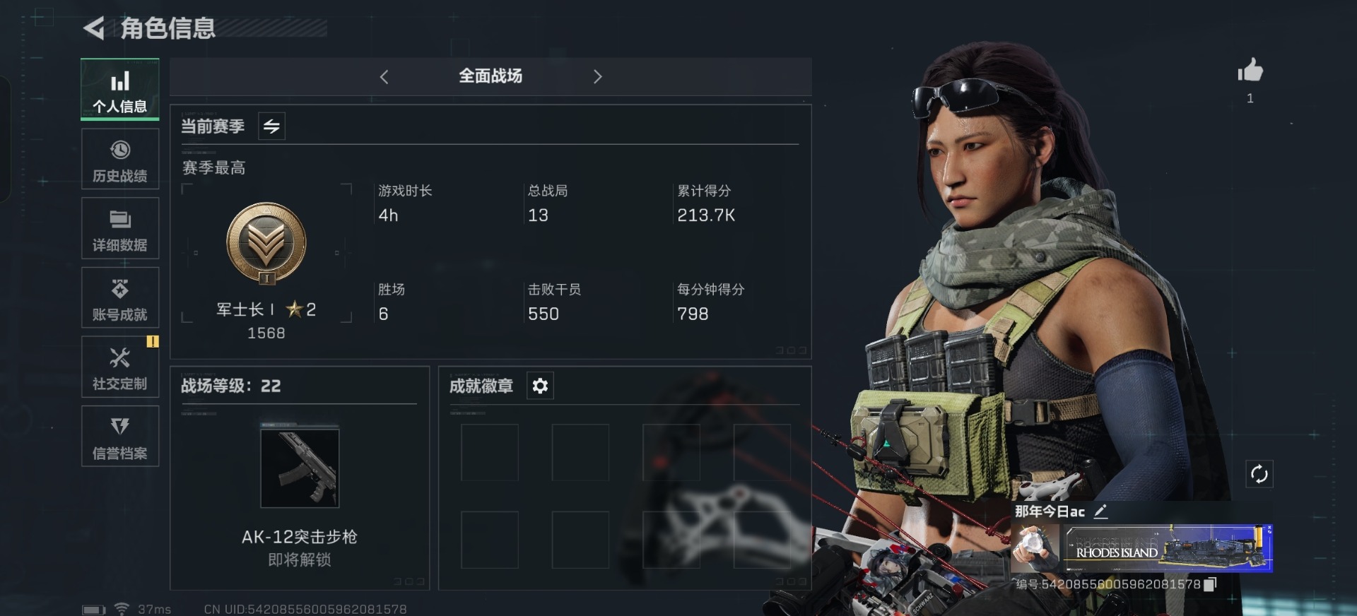 - [9441516]可二次 可修改实名 实名:可修改 烽火地带段位:无段位 全面战场段位:无段位 总资产(M):43.7 哈夫币:7.921 史诗武器皮肤:M1014霰弹枪-林中猎手,AKM突击步枪-林中猎手