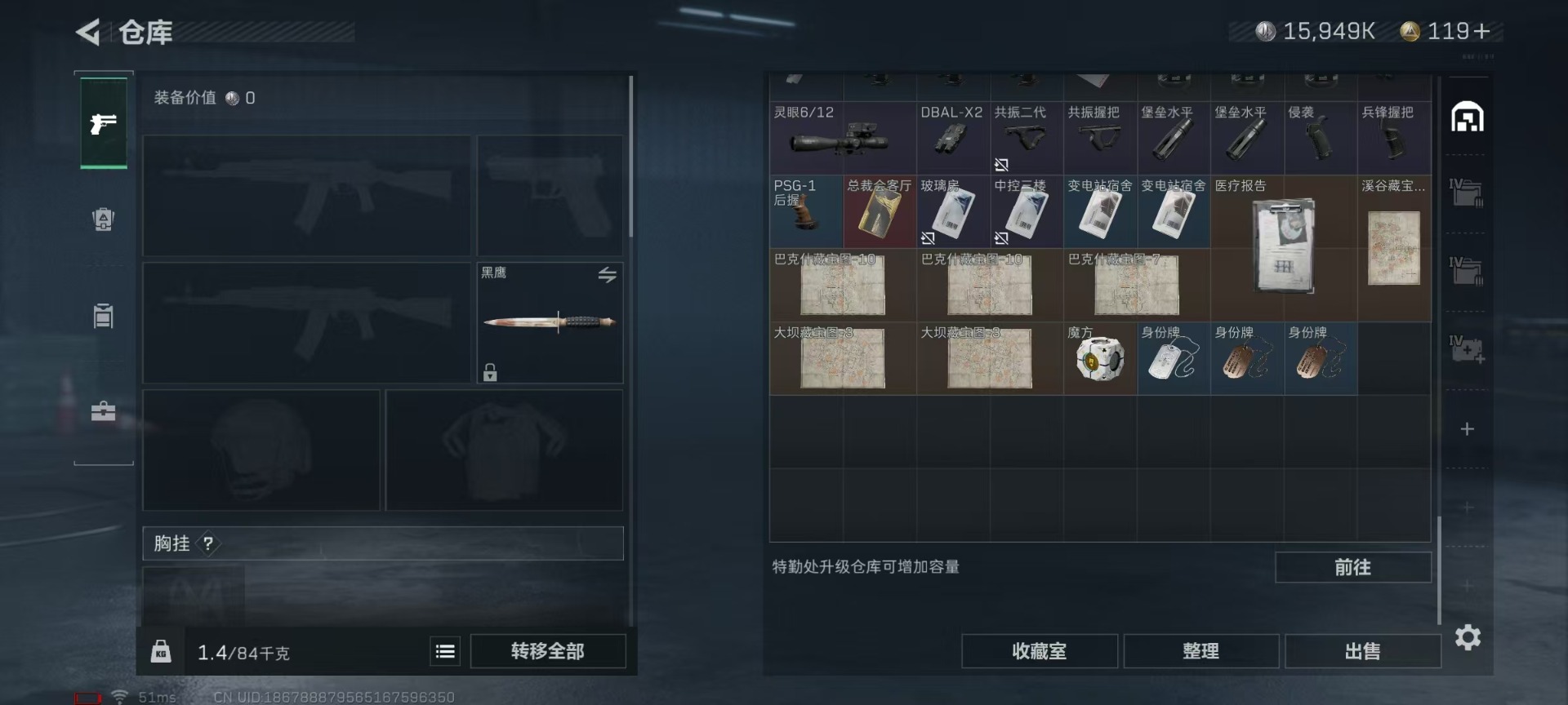[11884250]总资产:112M 6传说枪械 哈夫币:15.949K 可二次 可修改实名 烽火地带段位:钻石 全面战场段位:无段位 传说武器皮肤:93R-捞点薯条,AWM狙击步枪-捞点薯条,腾龙突击步枪-捞点薯条,CAR-15突击步枪-阿米娅,勇士冲锋枪-能天使-午夜邮差,M4A1突击步枪-阿米娅 史诗武器皮肤:M16A4突击步枪-竞赛选手,SV-98狙击步枪-林中猎手