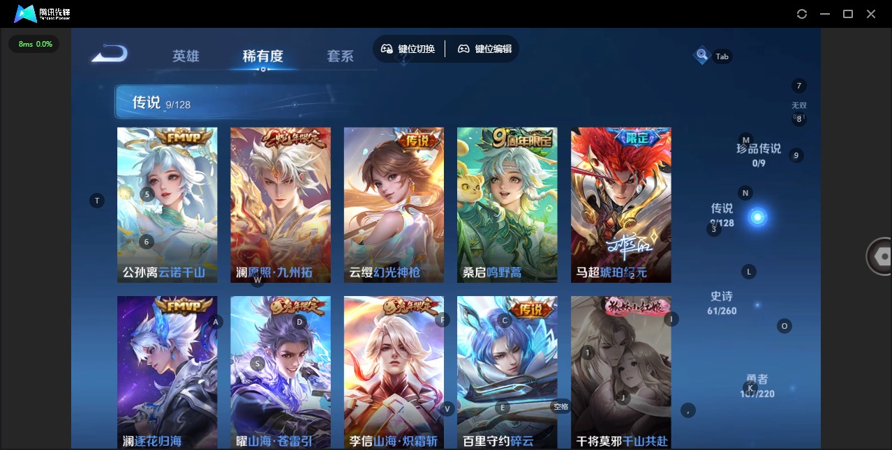- [11884598]V7 1典藏 10传说 124英雄 165皮肤 可修改实名 优质装备:全息碎影(猴子典藏),云鹰飞将(小将军),炽阳神光,无双飞将,澜逐花归海 传说皮:典韦战鼓燎原,九山相柳,祥瑞亨通,幻光神枪 珍宝阁皮:妄想食味,胡桃夹子 限定皮:愿照·九州拓(澜年限),逐霄战戟,鸣野蒿,五谷丰年,神器·万象笔 史诗皮:鸭鸭历险记-刘禅,星界战将,龙之律动,茶境仙,蒙犽顽岩魄,蔬乡物语(鲁班七号),百相守梦-黄忠,紫霞仙子,黄金分割率,特工魅影,江河有灵,魅语,偶像歌手,末日机甲-吕布,时之恋人-孙尚香,乱世虎臣,节奏热浪,女仆咖啡,摇滚巨星,水果甜心,星夜王子,德古拉伯爵,暗隐猎兽者,幽灵船长,鬼剑武藏,暗渊魔法,舞动绿茵,乘风破浪,逐浪之夏,水晶猎龙者,金属风暴,原初追逐者,圣诞狂欢,圣诞恋歌,鹰眼统帅,魅力维加斯,无心,未来纪元-赵云