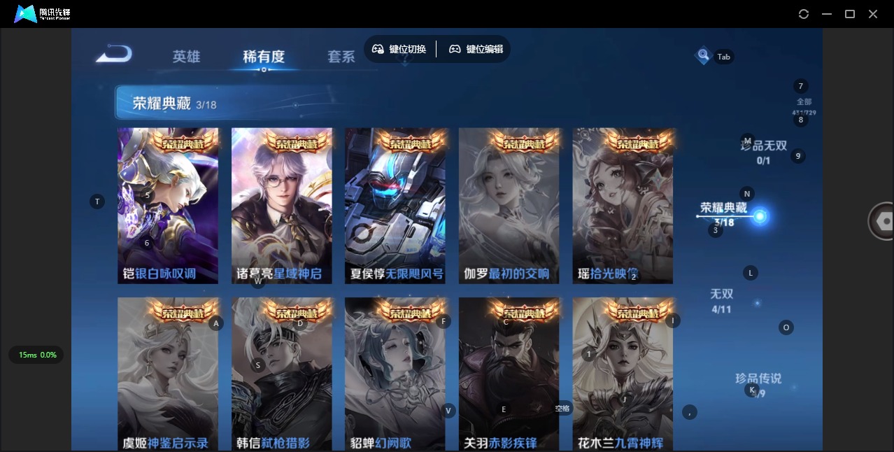 - PX_2074641-40 安卓QQ/非凡王者/312皮肤/123英雄/2典藏/0珍品无双/0无双/1珍品传说/19传说/85史诗/8稀有英雄 【1 珍品传说】怪盗基德 马可波罗, 【2 典藏皮肤】全息碎影 孙悟空,银白咏叹调 铠, 【19 传说皮肤】枫霜尽 橘右京,胖达荣荣 梦奇,启明星使 虞姬,前尘镜 娜可露露,飞鸢探春 李元芳,零号·赤焰 孙悟空,齐天大圣 孙悟空,深海之息 马可波罗,诗剑行
