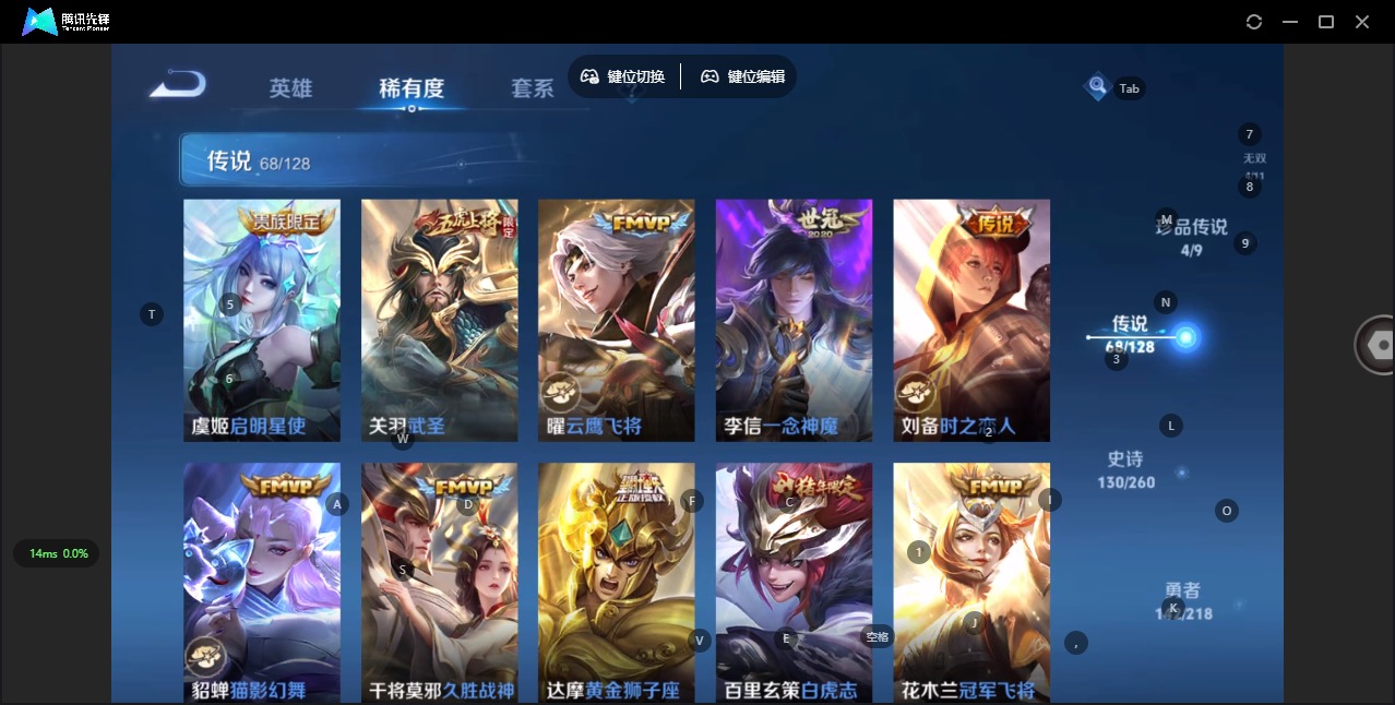 - [12073827]V5 5传说 104英雄 96皮肤 可修改实名 女号 传说皮:云诺千山,幻光神枪 限定皮:愿照·福禄聚(蔡文姬年限),愿照·众生和(妲己年限),鸣野蒿,五谷丰年 史诗皮:龙之律动,蒙犽顽岩魄,织梦人,偶像歌手,乱世虎臣,水果甜心,天才门将,心灵骇客,鬼剑武藏,水晶猎龙者,箭羽风息,鹰眼统帅,魅力维加斯,未来纪元-赵云