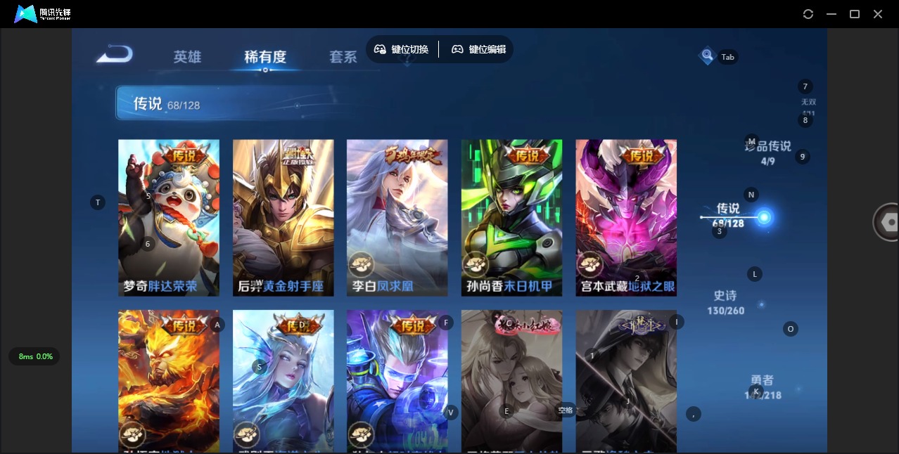- [12204528]V8 2典藏 18传说 124英雄 315皮肤 可修改实名 苏烈大国标 优质装备:星域神启(倪克斯贼亮),九霄神辉(木兰典藏),云鹰飞将(小将军),久胜战神,炽阳神光,一念神魔,末日机甲-孙尚香(绿蚂蚱),仲夏夜之梦(大飞蛾),地狱之眼,李逍遥,挚爱之约,千山共赴,涂山容容 珍宝阁皮:优雅恋人 限定皮:愿照·九州拓(澜年限),鸣野蒿,至尊宝,白虎志(电光耗子),凤求凰(白切鸡),梅西,神威(电光马子),瑞麟志(木兰年限),遇见飞天,冰锋战神,武圣,梁祝,天狼狩猎者,天狼征服者,李小龙,逐梦之光,玄武志(苏烈年限),永曜之星,辉光之辰,一生所爱,大圣娶亲,引擎之心,青春决赛季,冰霜恋舞曲,云端筑梦师,蜜橘之夏,寅虎·瑞焰(虎皮蛋子) 史诗皮:鸭鸭历险记-刘禅,器灵·浮梦炉,绮世丹青,瑰影绮梦,化蝶舞,灵蛊蚀心,龙之律动,藏狐·褐绒,百相守梦-周瑜,茶境仙,破空之剑,蔬乡物语(鲁班七号),百相守梦-百里守约,百相守梦-黄忠,织梦人,苍穹之光,特工魅影,千年之狐,魅语,蒙恬荣光圣徽,无限星赏官,冰冠公主,青蛇,偶像歌手,晚萤,末日机甲-吕布,猫狗日记-孙策,猫狗日记-大乔,乱世虎臣,节奏热浪,修罗,女仆咖啡,摇滚巨星,水果甜心,天才门将,星夜王子,心灵骇客,功夫厨神,德古拉伯爵,暗隐猎兽者,幽灵船长,鬼剑武藏,乐园奇幻夜,地狱岩魂,繁星吟游(呼啦呼啦),乘风破浪,逐浪之夏,水晶猎龙者,曙光守护者,原初追逐者,圣诞狂欢,圣诞恋歌,鹰眼统帅,魅力维加斯,黎明之约,赏金猎手,无心