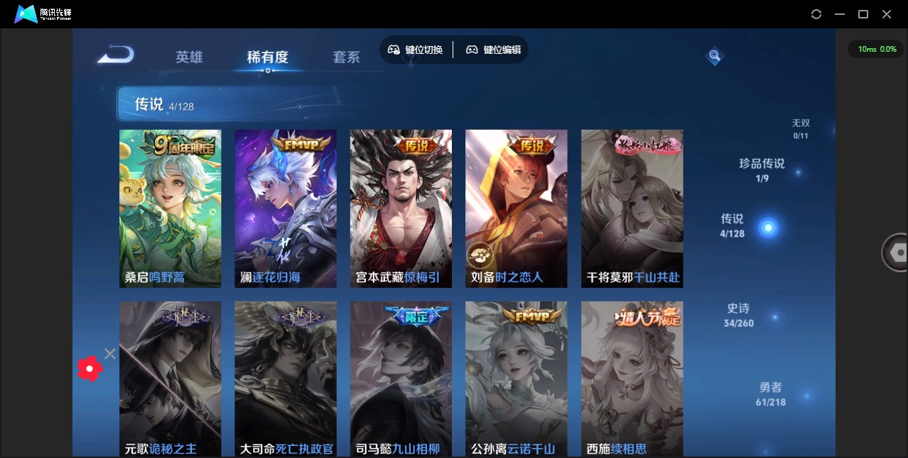 [11884343]V6 1珍品传说 4传说 123英雄 123皮肤 可修改实名 优质装备:时之恋人-刘备(电焊工),惊梅引,澜逐花归海 珍品传说:时之奇旅-孙策 珍宝阁皮:玩趣恶龙 限定皮:鸣野蒿,五谷丰年,梁祝,李小龙 史诗皮:谪仙醉月,破空之剑,百相守梦-百里守约,紫霞仙子,电玩小子(小书包),特工魅影,江河有灵,魅语,百解令(蒙犽),冰冠公主,青蛇,偶像歌手,电玩·爆裂旋风,节奏热浪,女仆咖啡,水果甜心,鬼剑武藏,心灵战警,纤云弄巧,拒霜思,乘风破浪,水晶猎龙者,曙光守护者,圣诞恋歌,鹰眼统帅,魅力维加斯,天秀·音浪