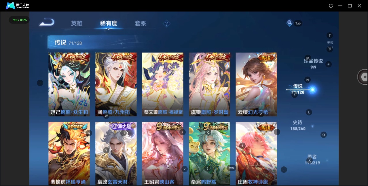 - [11518676]V8 1典藏 14传说 124英雄 234皮肤 可修改实名 优质装备:天鹅之梦(小乔典藏),炽阳神光,地狱火,仲夏夜之梦(大飞蛾),地狱之眼,超时空战士-狄仁杰,挚爱之约,澜逐花归海 珍宝阁皮:女武神,玩趣恶龙 限定皮:至尊宝,白虎志(电光耗子),太华(伽罗年限),傲雪梅枪,绯月行,时之彼端,时雨天司(水龙头),遇见飞天,高山流水,诗剑行,五谷丰年,青龙志(铠年限),冰锋战神,游园惊梦,梁祝,李小龙,朱雀志(守约年限),永曜之星,如梦令-后羿,孙行者,大圣娶亲,青春决赛季,神器·万象笔 史诗皮:百相守梦-黄忠,电玩小子(小书包),白龙吟,黄金分割率,特工魅影,千年之狐,江河有灵,高渐离燃音魔法,偶像歌手,龙骑士(小龙虾),暗夜猫娘,魅语,晚萤,冰冠公主,末日机甲-吕布,猫狗日记-孙策,乱世虎臣,节奏热浪,修罗,女仆咖啡,水果甜心,天才门将,心灵骇客,功夫厨神,德古拉伯爵,幽灵船长,鬼剑武藏,暗渊魔法,纤云弄巧,拒霜思,逐浪之夏,龙鼓争鸣,曙光守护者,金属风暴,圣诞狂欢,圣诞恋歌,鹰眼统帅,暗夜贵公子,魅力维加斯,黎明之约,奇遇舞章,无心