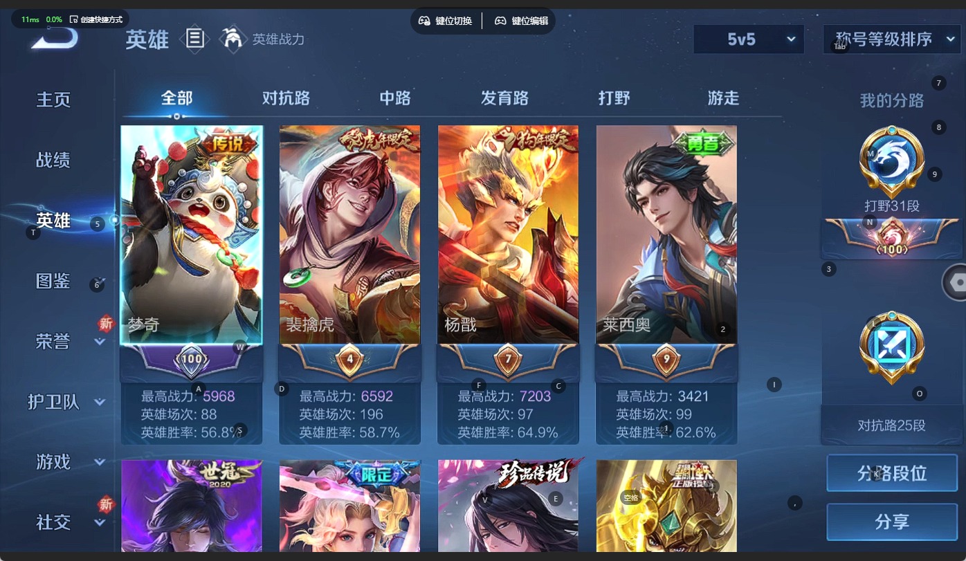 - [11297504]V7 10传说 121英雄 231皮肤 可修改实名 优质装备:仲夏夜之梦(大飞蛾),零号·赤焰,李逍遥,挚爱之约,挚爱花嫁 珍宝阁皮:蔷薇恋人,女武神 限定皮:鸣野蒿,武陵仙君(小桃花),傲雪梅枪,前尘镜,飞衡(韩信年限),遇见飞天,五谷丰年,游园惊梦,梁祝,李小龙,默契交锋-兰陵王,大圣娶亲,引擎之心,冰霜恋舞曲,寅虎·心曲(虎婆),百木心枪,启示之音 史诗皮:紫霞仙子,苍穹之光,白龙吟,特工魅影,江河有灵,晚萤,电玩·爆裂旋风,百相守梦(刘备),暗夜猫娘,乱世虎臣,节奏热浪,修罗,女仆咖啡,水果甜心,星夜王子,暗隐猎兽者,幽灵船长,鬼剑武藏,纤云弄巧,拒霜思,缤纷独角兽,乘风破浪,逐浪之夏,水晶猎龙者,唤灵魅影,金属风暴,原初追逐者,圣诞恋歌,鹰眼统帅,魅力维加斯,黎明之约,赏金猎手,无心,未来纪元-赵云