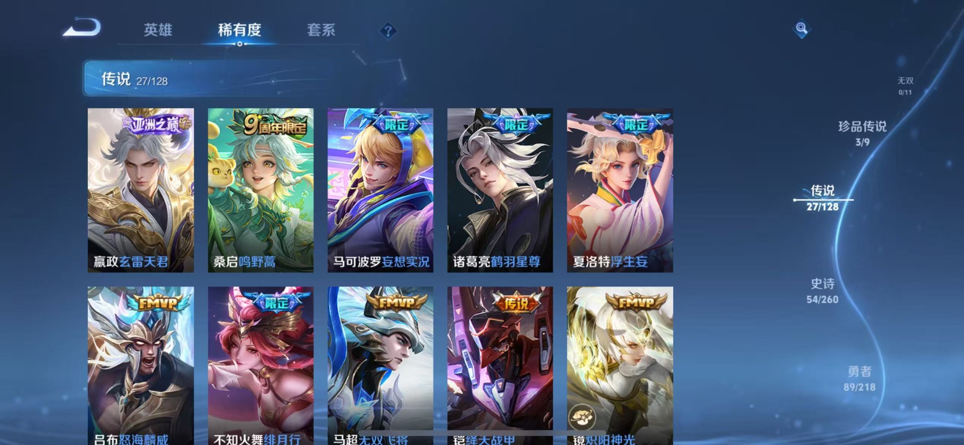- [11678994]V8 1典藏 12传说 123英雄 265皮肤 可修改实名 优质装备:星空梦想(太空人),一念神魔,地狱火,飞鸢探春,无双飞将,音你闪耀(rap皮),燃星之曲,鹤归松栖(云缨),霜月吟 传说皮:铠冥王哈迪斯,星之鸣奏 珍宝阁皮:蔷薇恋人,女武神 限定皮:愿照·众生和(妲己年限),陌上桑,傲雪梅枪,五谷丰年,青龙志(铠年限),游园惊梦,梁祝,李小龙,女儿国国王,时之奇旅-妲己 史诗皮:茶境仙,蔬乡物语(鲁班七号),琥珀纪元伽罗,遇见神鹿,紫霞仙子,电玩小子(小书包),黄金分割率,永昼,真我赫兹(百里守约),鹤归松栖(赵怀真),江河有灵,百解令(蒙犽),高渐离燃音魔法,偶像歌手,白蛇,无限星赏官,冰冠公主,青蛇,猫狗日记-孙策,猫狗日记-大乔,乱世虎臣,节奏热浪,女仆咖啡,水果甜心,天才门将,星夜王子,心灵骇客,时之奇旅-安琪拉,功夫厨神,德古拉伯爵,幽灵船长,鬼剑武藏,心灵战警,舞动绿茵,地狱岩魂,纤云弄巧,繁星吟游(呼啦呼啦),拒霜思,乘风破浪,逐浪之夏,水晶猎龙者,曙光守护者,箭羽风息,金属风暴,圣诞狂欢,圣诞恋歌,鹰眼统帅,魅力维加斯,无心,未来纪元-赵云,玫瑰异探