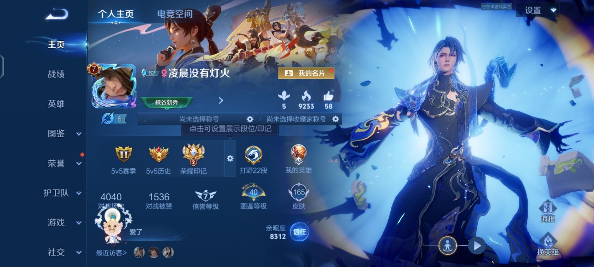 - PX_2057213-贵族等级: V5 英雄数: 47 皮肤数: 30 传说皮: 超时空战士-狄仁杰,云诺千山 限定皮: 鸣野蒿,愿照·山河定