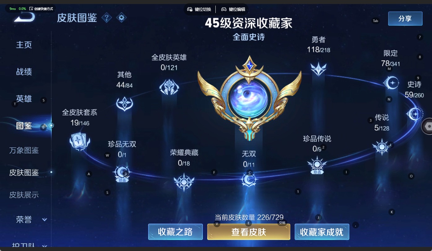 - PX_2108262-实名: 不可修改 英雄数: 124 皮肤数: 262 荣耀水晶: 武则天,星空梦想,无限飓风号,鸣剑·曳影,全息碎影 传说皮: 黄金狮子座,黄金射手座,冠军飞将,绛天战甲,久胜战神,一念神魔,云霓雀翎,末日机甲-孙尚香,地狱火,仲夏夜之梦,海洋之心,李逍遥,游龙清影,无双飞将,山海·炽霜斩 限定皮: 李小龙,梁祝,引擎之心,烈魂,岱宗,神威,蜜橘之夏,太华,天狼征服者,青春决