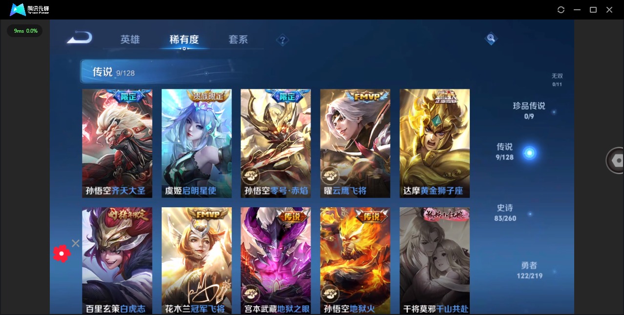 [11884978]V8 3典藏 9传说 124英雄 282皮肤 可修改实名 优质装备:无限飓风号(高达),鸣剑·曳影,全息碎影(猴子典藏),黄金狮子座,冠军飞将,云鹰飞将(小将军),地狱火,零号·赤焰,地狱之眼 珍宝阁皮:优雅恋人,蔷薇恋人 限定皮:至尊宝,白虎志(电光耗子),瑞麟志(木兰年限),遇见飞天,高山流水,齐天大圣,五谷丰年,冰锋战神,梁祝,天狼狩猎者,李小龙,逐梦之影,如梦令-后羿,霸王别姬-项羽,默契交锋-花木兰,孙行者,猪悟能,大圣娶亲,冰霜恋舞曲 史诗皮:紫霞仙子,苍穹之光,电玩小子(小书包),白龙吟,黄金分割率,特工魅影,千年之狐,江河有灵,魅语,百解令(蒙犽),冰冠公主,偶像歌手,暗夜猫娘,猫狗日记-孙策,时之恋人-孙尚香,乱世虎臣,节奏热浪,女仆咖啡,摇滚巨星,水果甜心,绅士熊喵,天才门将,星夜王子,心灵骇客,功夫厨神,德古拉伯爵,暗隐猎兽者,幽灵船长,鬼剑武藏,心灵战警,舞动绿茵,地狱岩魂,纤云弄巧,繁星吟游(呼啦呼啦),拒霜思,缤纷独角兽,乘风破浪,逐浪之夏,水晶猎龙者,金属风暴,原初追逐者,圣诞狂欢,圣诞恋歌,鹰眼统帅,魅力维加斯,黎明之约,未来纪元-赵云