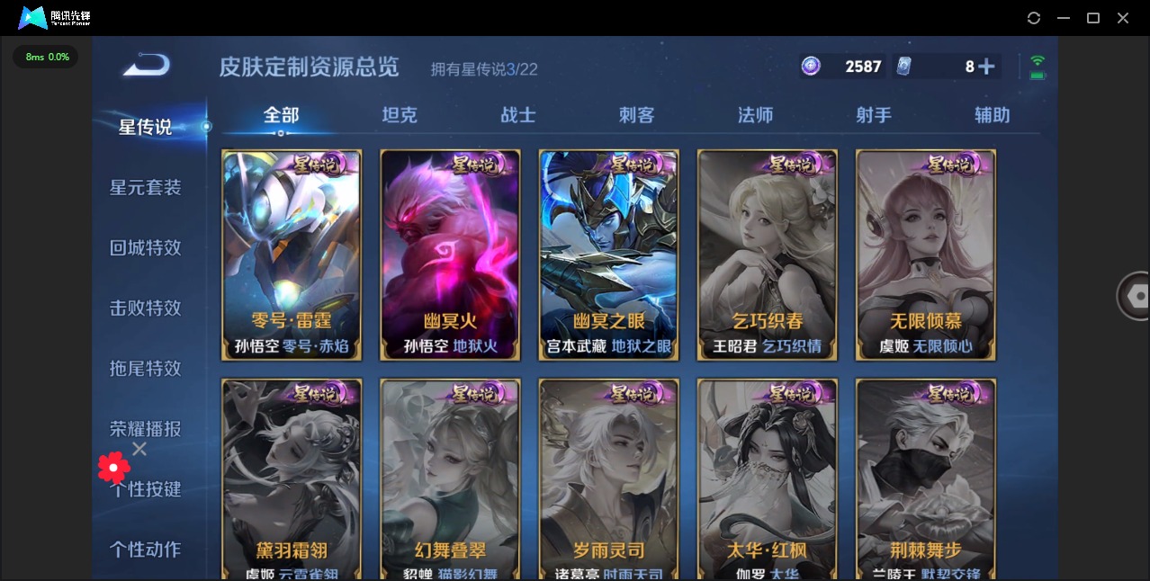 - [12062567]V8 2典藏 21传说 123英雄 343皮肤 可修改实名 连体和平 优质装备:鸣剑·曳影,九霄神辉(木兰典藏),黄金射手座,云鹰飞将(小将军),久胜战神,炽阳神光,一念神魔,末日机甲-孙尚香(绿蚂蚱),地狱火,仲夏夜之梦(大飞蛾),地狱之眼,淬星耀世,超时空战士-狄仁杰,碎云,神器·狴犴令,浮生妄 传说皮:幻光神枪 珍宝阁皮:优雅恋人,女武神 限定皮:凤求凰(白切鸡),傲雪梅枪,星穹之声,绯月行,神威(电光马子),飞衡(韩信年限),山海·碧波行(瑶年限),遇见飞天,高山流水,五谷丰年,冰锋战神,游园惊梦,梁祝,天狼狩猎者,逐梦之翼,天狼溯光者,李小龙,逐梦之影,朱雀志(守约年限),霸王别姬-虞姬,默契交锋-花木兰,孙行者,大圣娶亲,青春决赛季,蜜橘之夏,匿光追影者,深海之息(深海大菠萝),枫霜尽,匿光启智者,时之奇旅-妲己,梦圆繁星 史诗皮:遇见神鹿,紫霞仙子,苍穹之光,白龙吟,黄金分割率,特工魅影,千年之狐,魅语,无限星赏官,匿光破解者,冰冠公主,偶像歌手,龙骑士(小龙虾),末日机甲-吕布,猫狗日记-孙策,猫狗日记-大乔,乱世虎臣,节奏热浪,修罗,女仆咖啡,摇滚巨星,水果甜心,绅士熊喵,天才门将,星夜王子,心灵骇客,时之奇旅-安琪拉,功夫厨神,德古拉伯爵,暗隐猎兽者,幽灵船长,鬼剑武藏,心灵战警,天秀·启明,舞动绿茵,地狱岩魂,纤云弄巧,繁星吟游(呼啦呼啦),拒霜思,缤纷独角兽,乘风破浪,逐浪之夏,水晶猎龙者,曙光守护者,箭羽风息,金属风暴,原初追逐者,圣诞狂欢,圣诞恋歌,鹰眼统帅,暗夜贵公子,魅力维加斯,黎明之约,赏金猎手,无心,未来纪元-赵云